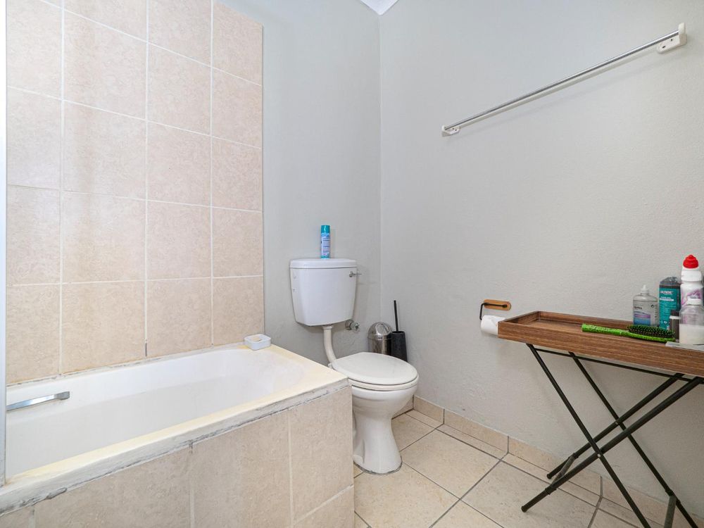 The spacious bedroom features built-in cupboards and an en-suite bathroom for your comfort.