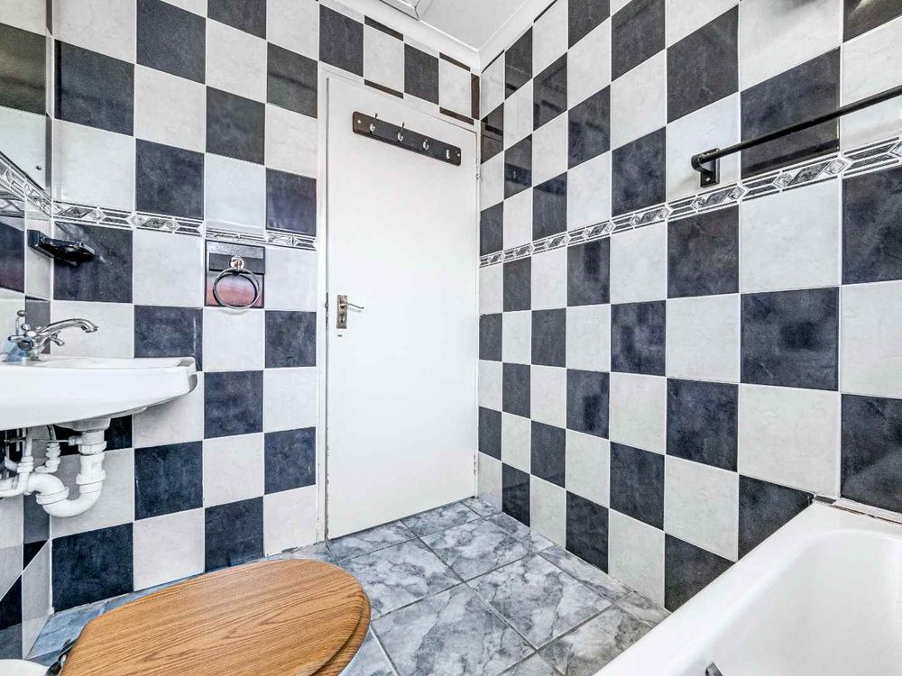 There are 2 bedrooms with built in cupboards. Family bathroom.