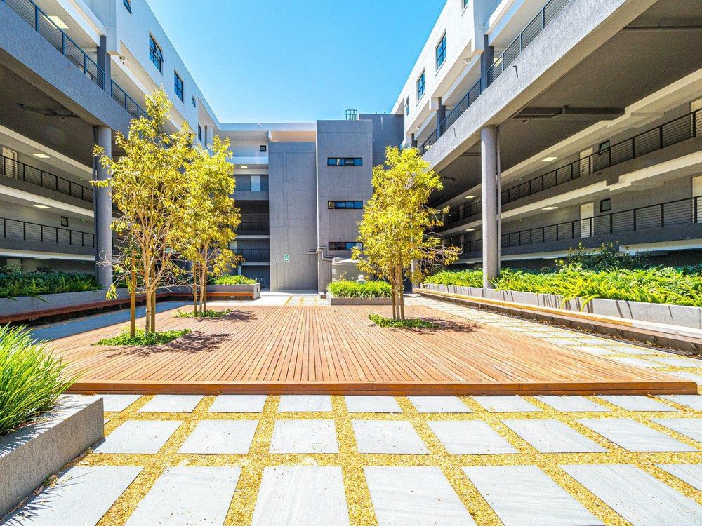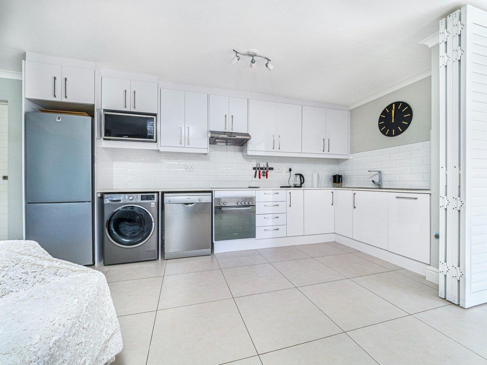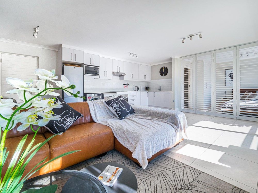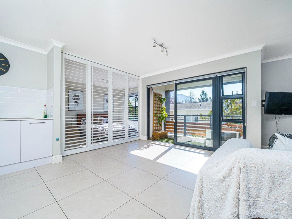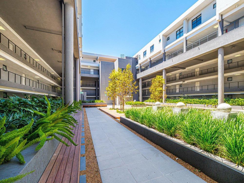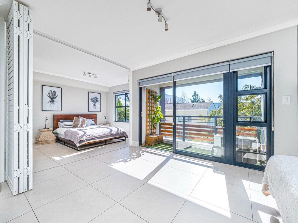 This modern and bright apartment is located in the peaceful suburbs of Kenilworth Upper. The balcony, facing north, provides breathtaking views of Table Mountain and fills the apartment with natural light all day long. The well-designed open-plan kitchen offers ample countertop and cupboard space, and is equipped with plumbing for two appliances, as well as a built-in oven and stove.