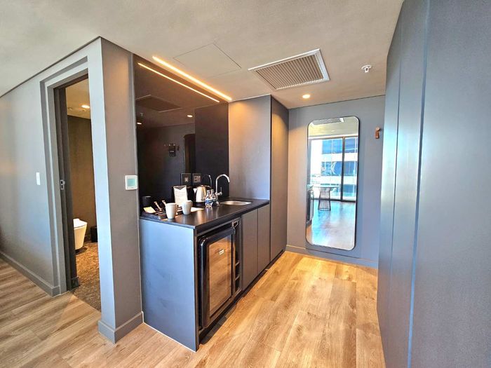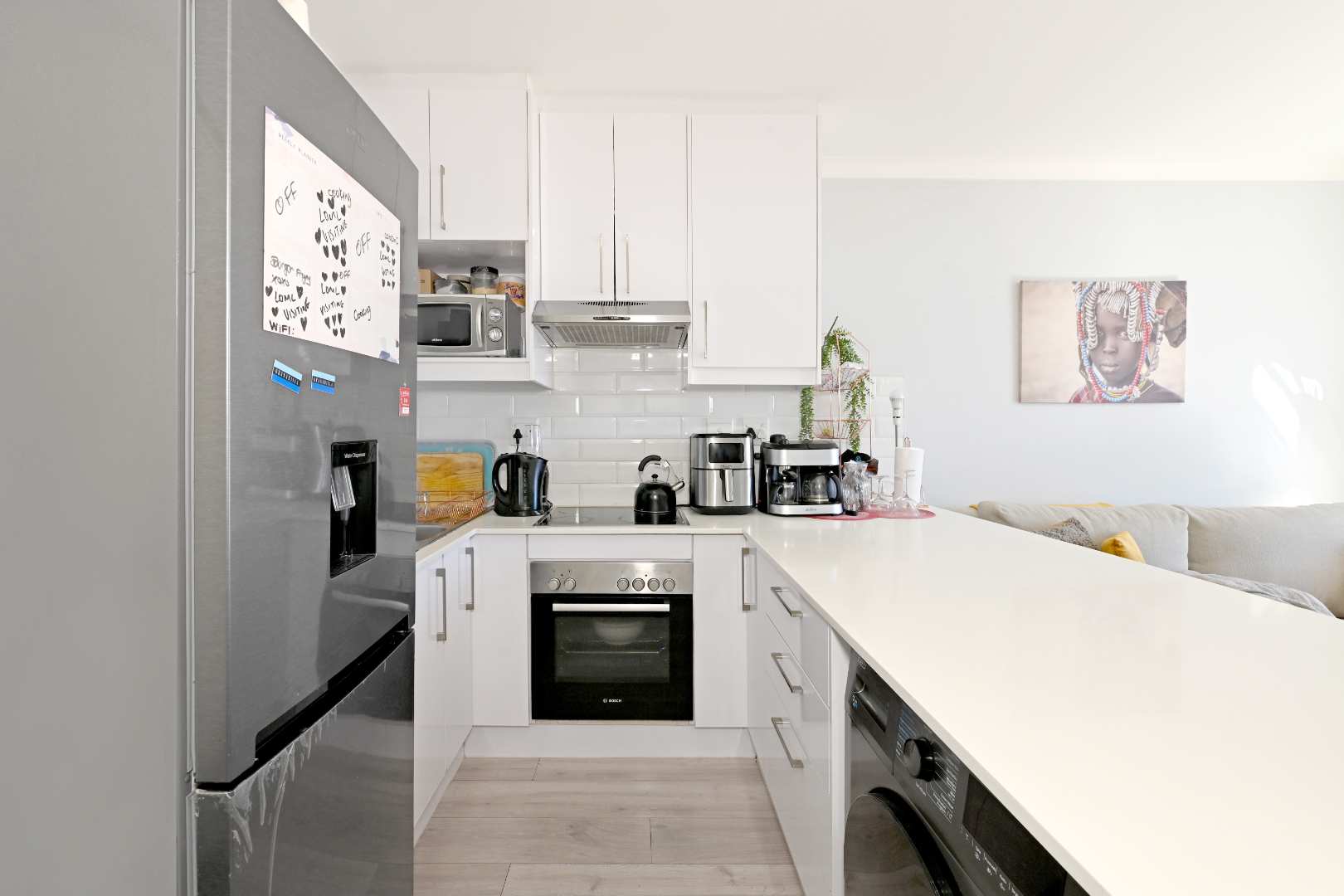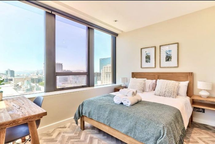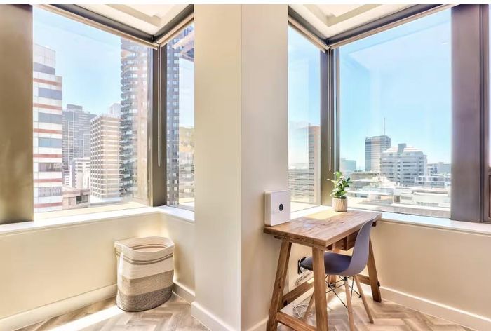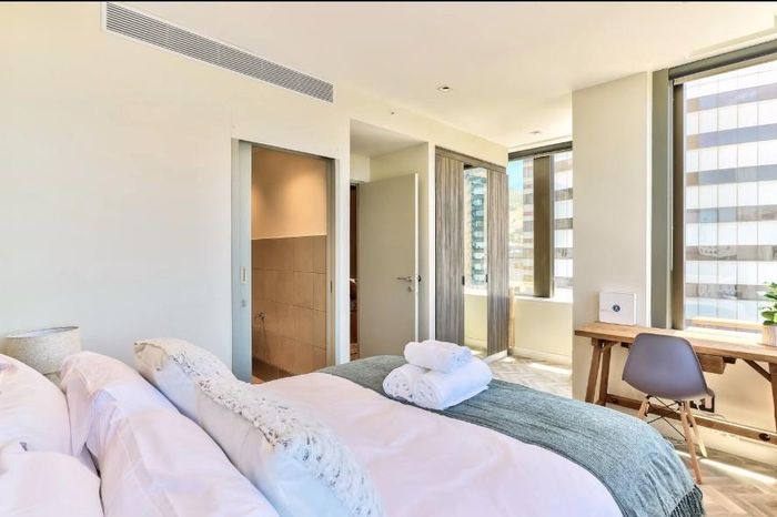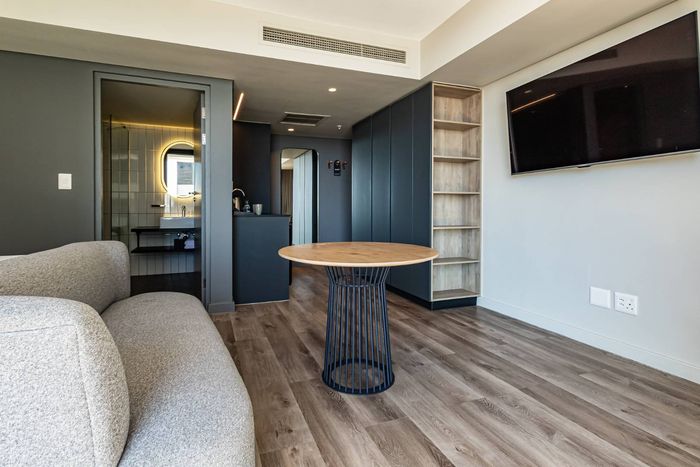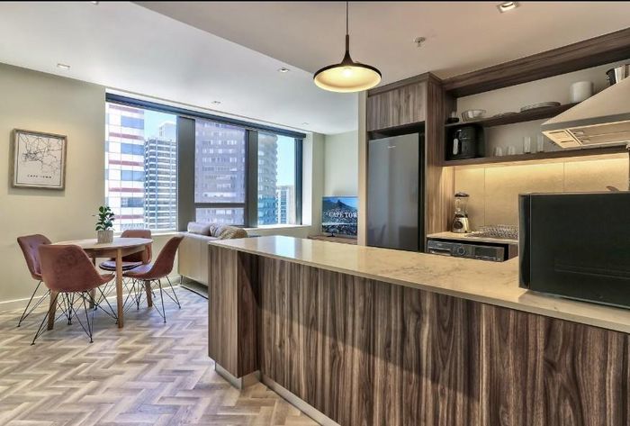 Thanks to its north-facing orientation, the apartment is filled with sunshine throughout the day, creating a warm and welcoming living space. The open-plan design allows the kitchen, dining, and lounge areas to flow easily together, extending out onto a spacious private balcony, an ideal spot to enjoy your morning coffee or unwind while taking in the surrounding mountain views, including glimpses of Devil’s Peak.