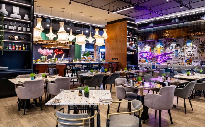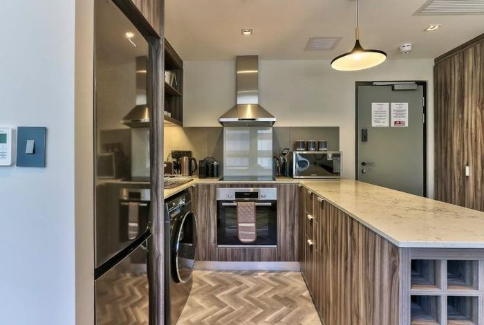 - Contemporary kitchen fitted with oven, hob, and extractor