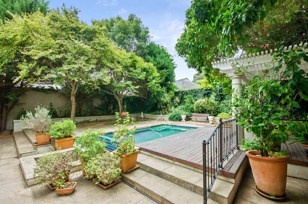 Upstairs, there are three generously sized bedrooms with built-in cupboards and a large private balcony overlooking the pool and garden.