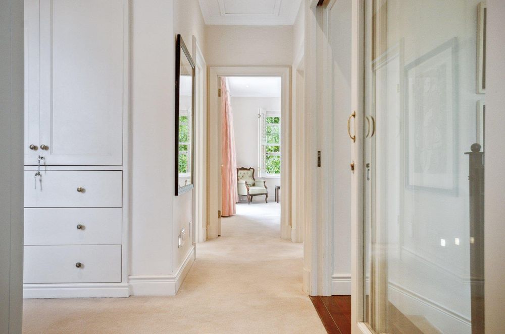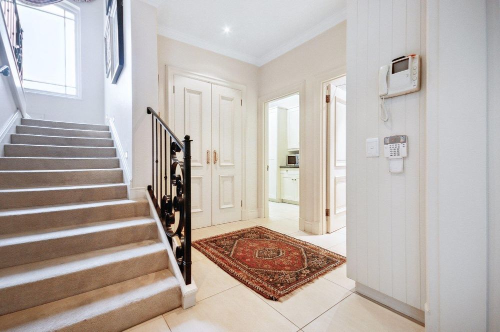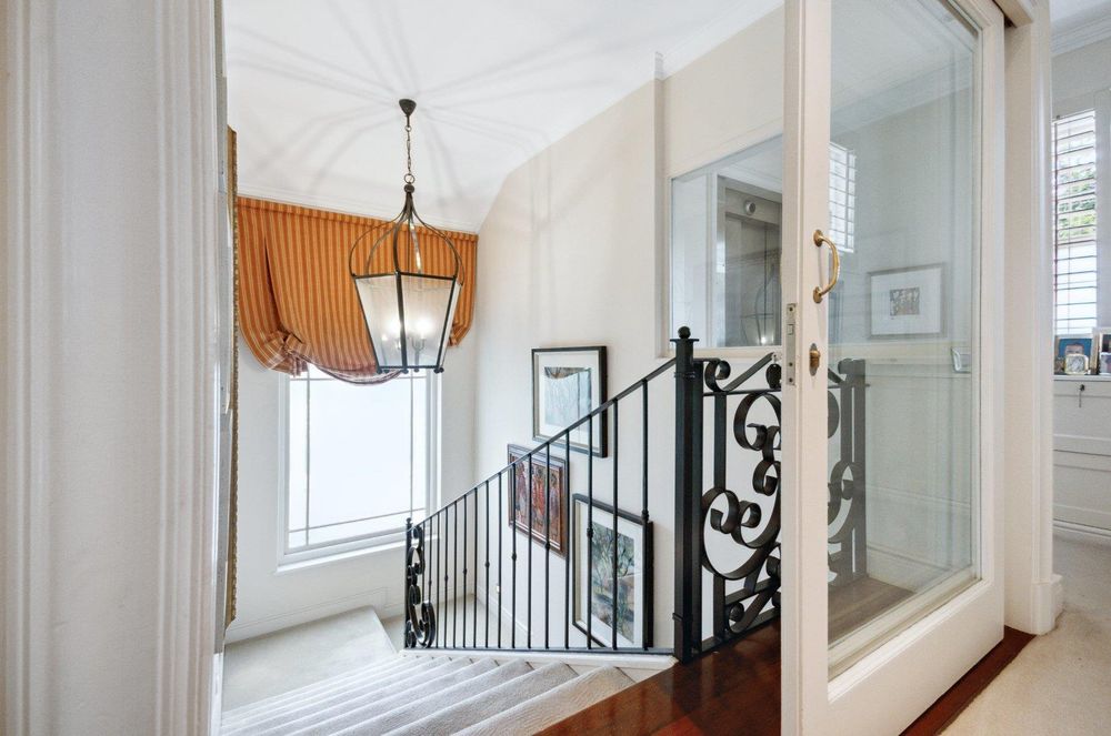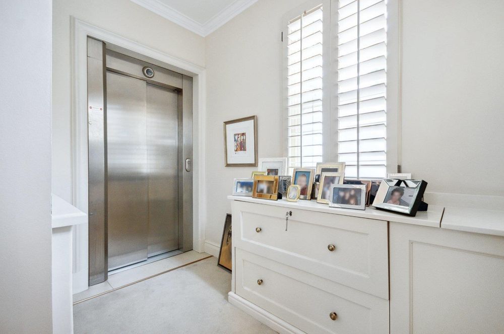 A full lift is discreetly hidden behind doors, as well as a beautifully carpeted staircase leading to the bedrooms.