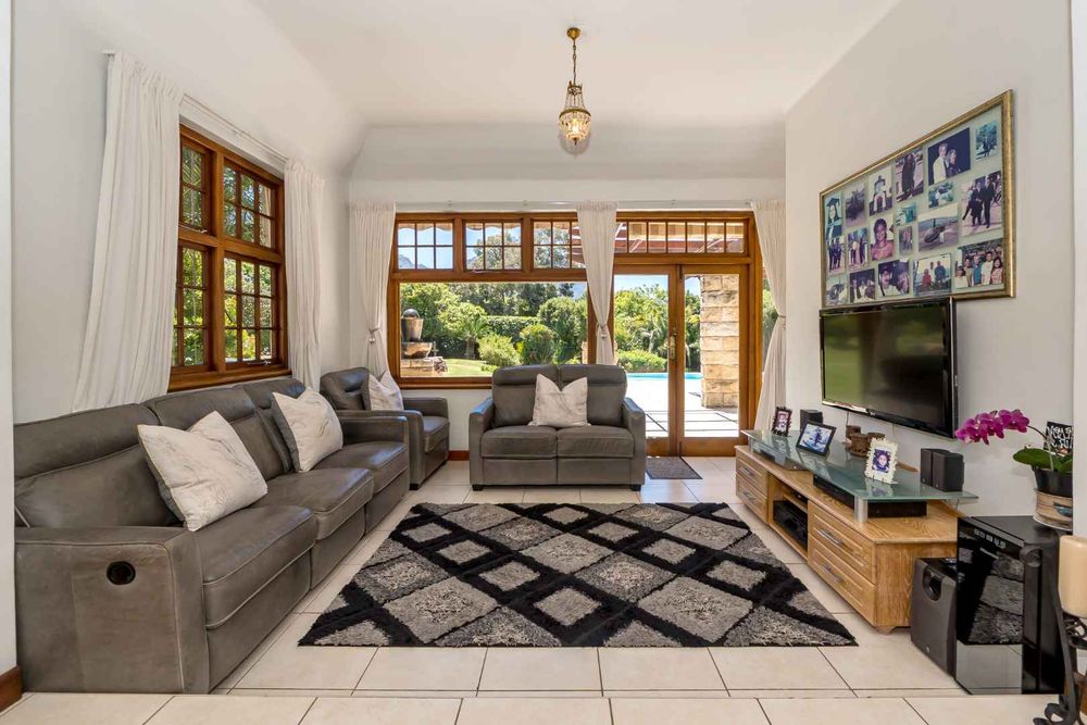 A sweeping driveway leads up to the grand stone-columned entrance, where the terrace flows effortlessly onto a sun soaked pool and rolling lawns, capturing magnificent views of Table Mountain, an outlook enjoyed from select upstairs bedrooms.