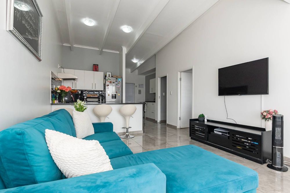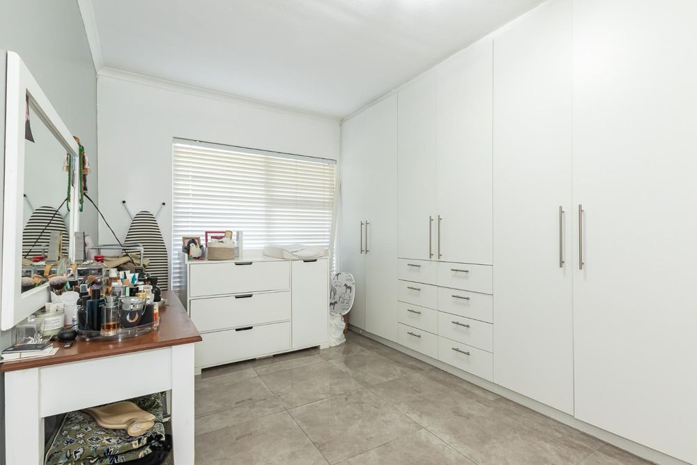 Both bedrooms are serene retreats, fully tiled and equipped with aluminium windows that allow for plenty of natural light. Built-in cupboards provide ample storage for clothing and personal items, keeping the bedrooms clutter-free and organized.
