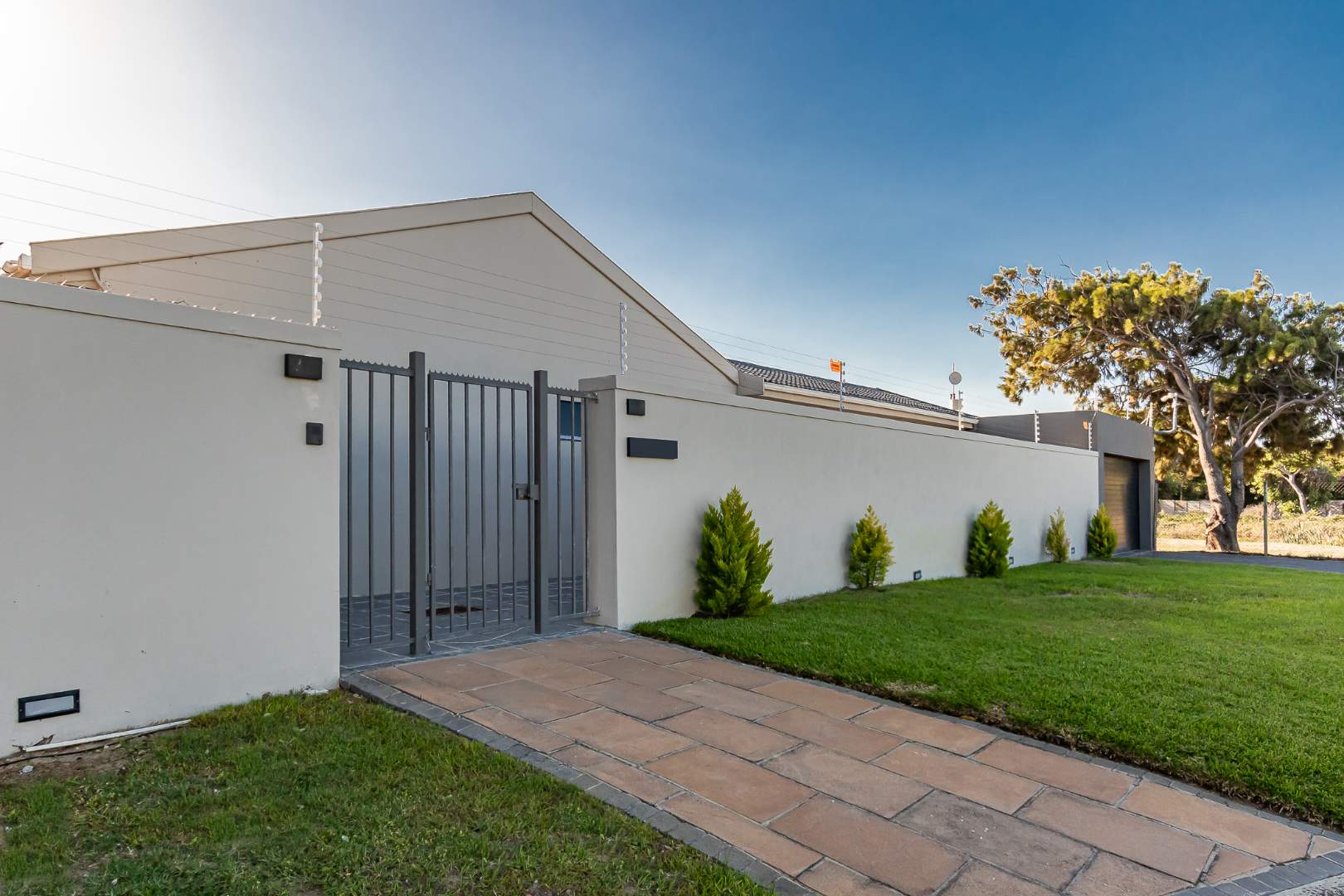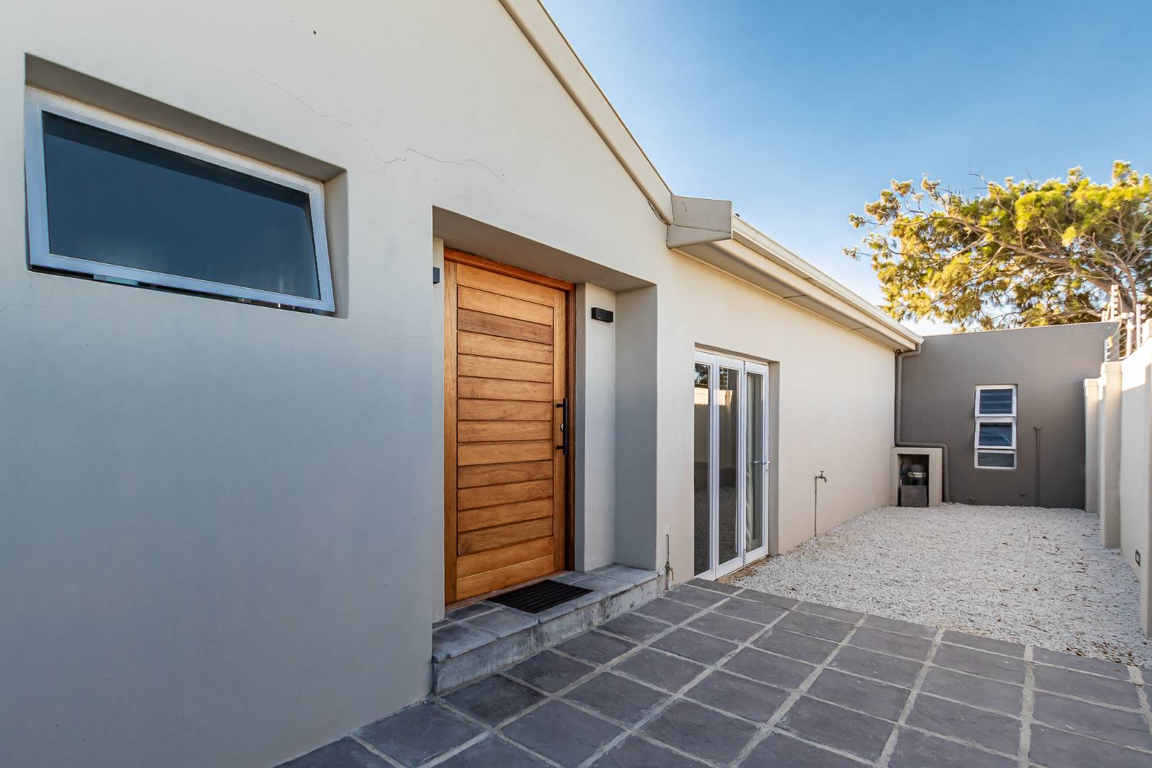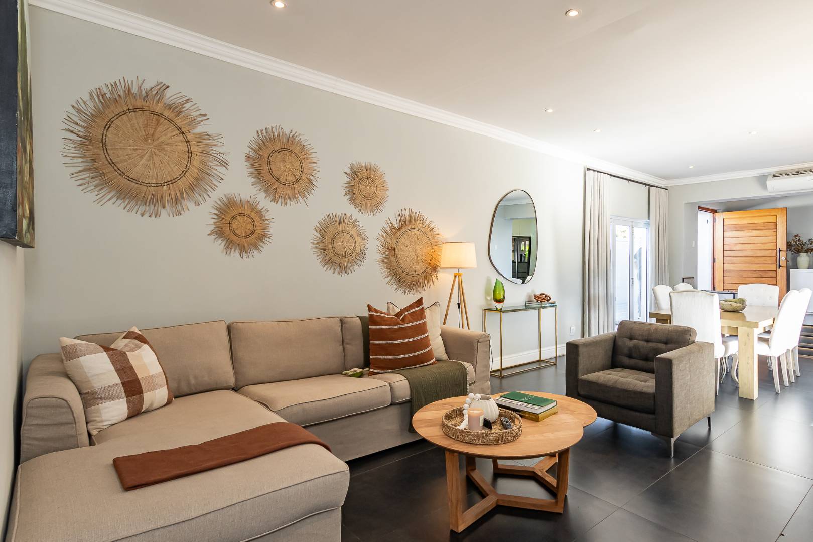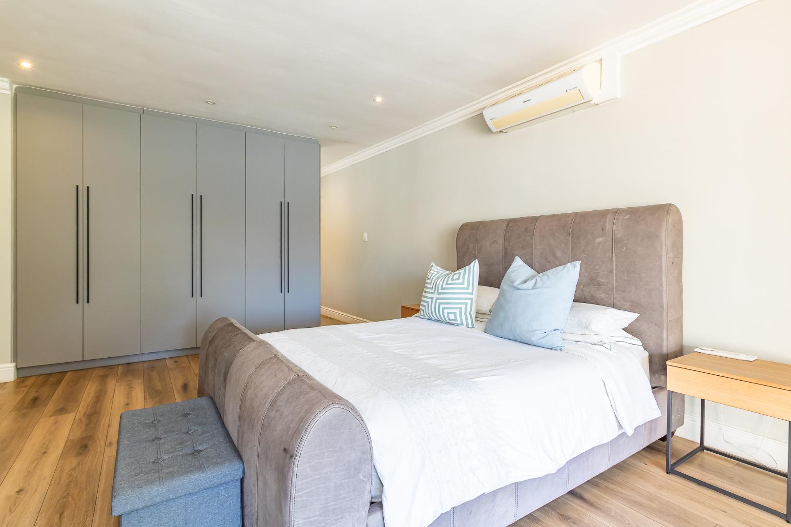 Sliding doors from the lounge and dining area open onto a generous covered patio that wraps around to the main bedroom, creating the perfect space for entertaining and relaxed outdoor living. The patio overlooks a beautiful garden with a sparkling pool and built-in braai area, ideal for hosting family and friends. From here, you can also enjoy magnificent sunsets disappearing behind the Constantia Berg mountains while sharing a glass of wine.