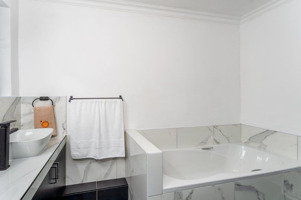 Two well-sized bedrooms in the main house include built-in cupboards and are serviced by a beautifully finished full family bathroom, complete with bath, shower, toilet and elegant his-and-hers basins, finished with contemporary tiling and quality fittings.