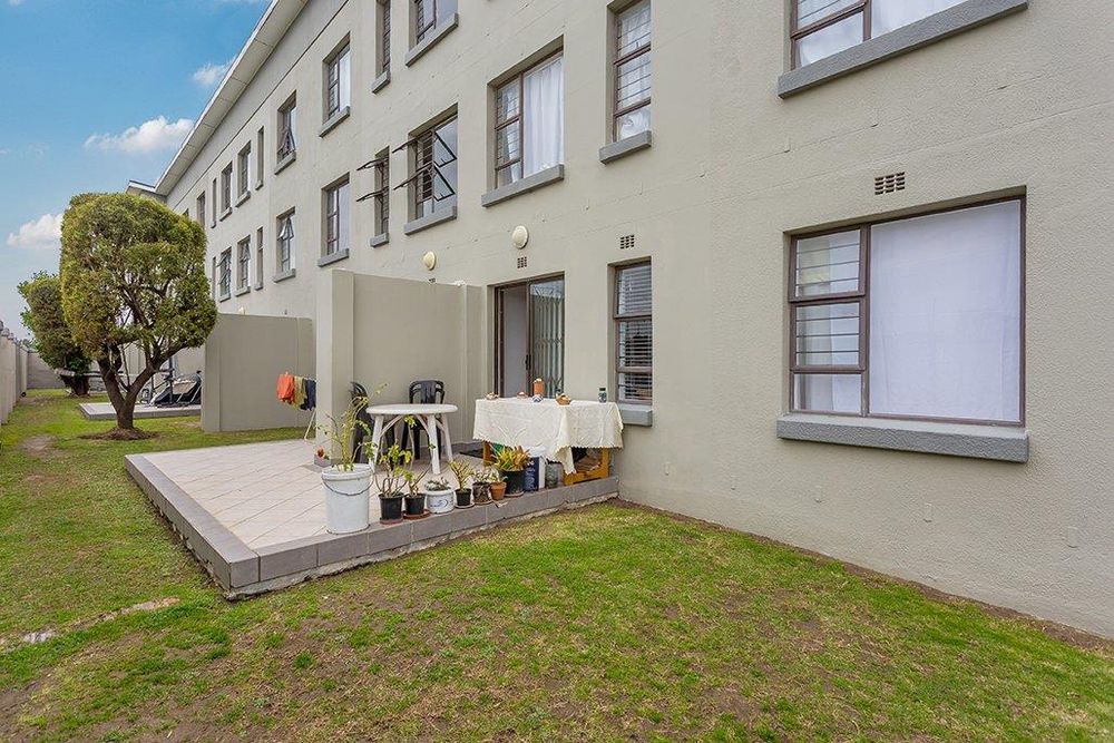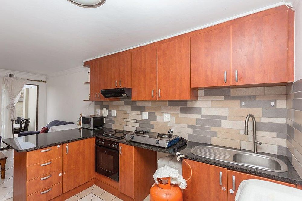 This ground floor apartment offers modern comfort with direct access to a patio and the communal garden, creating an inviting indoor-outdoor flow. The property is neat and well-finished, tiled throughout, and features built-in cupboards in both bedrooms as well as the kitchen. The open-plan kitchen boasts stone countertops and a plumbing point for your washing machine.