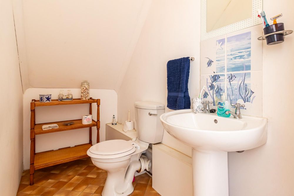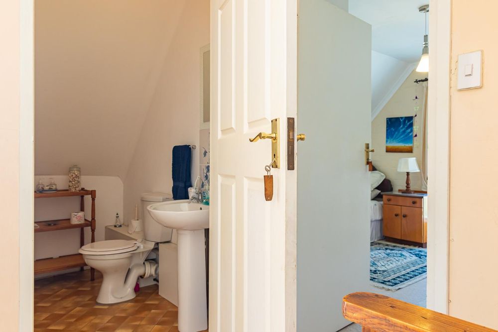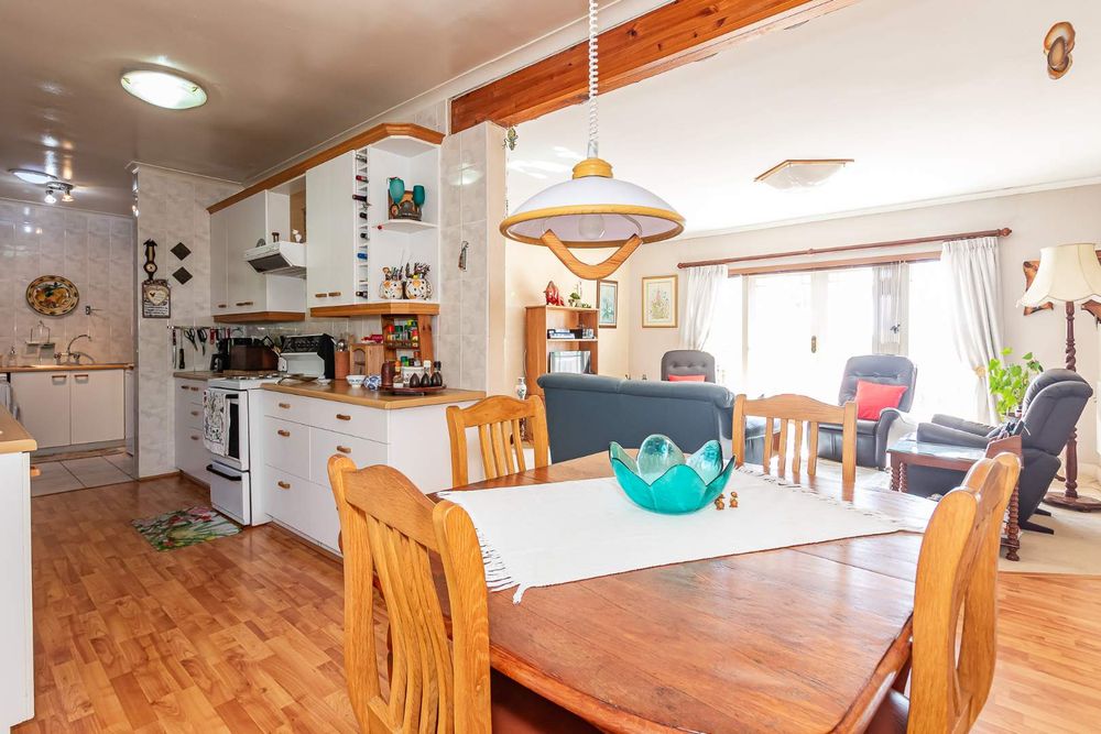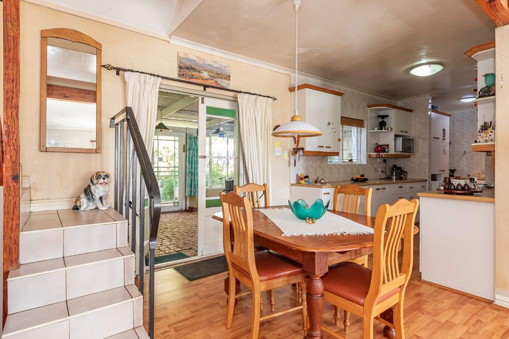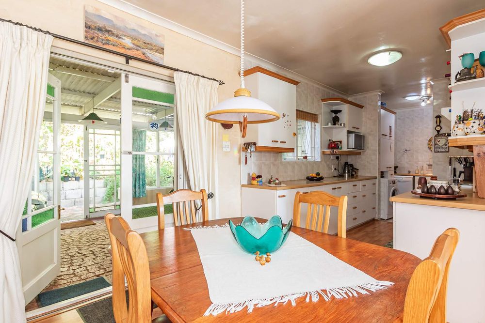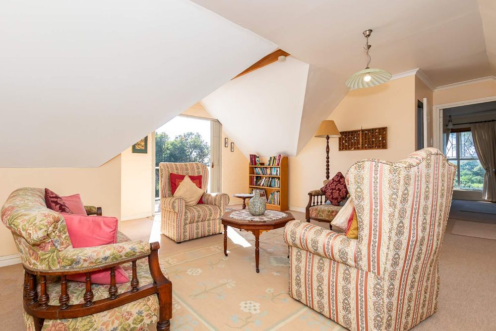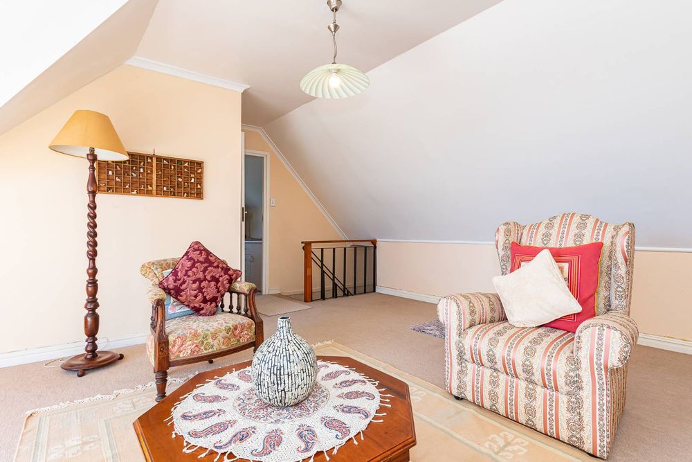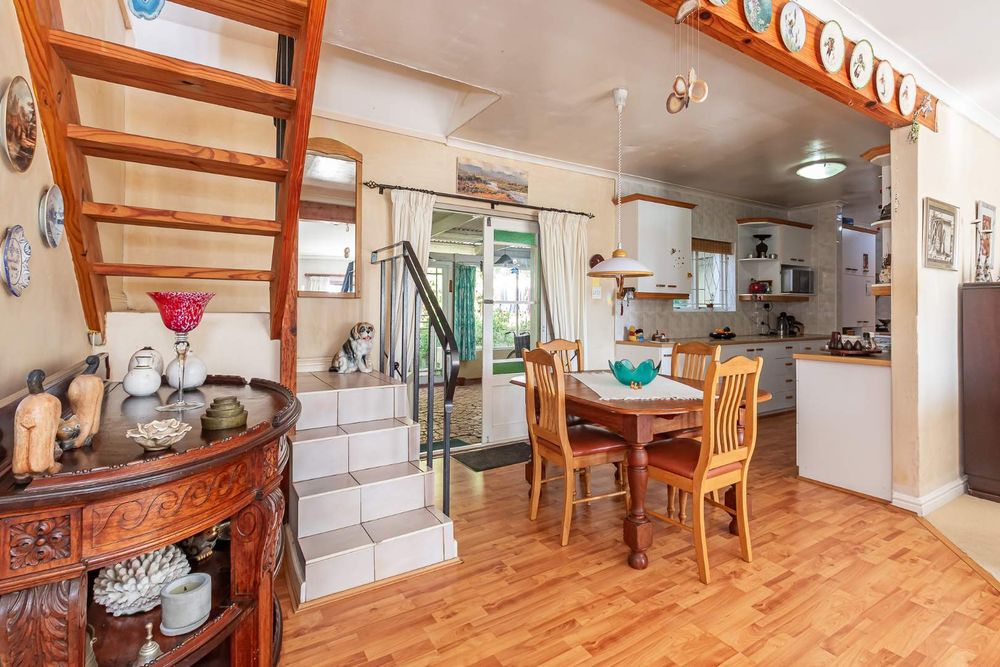 This four bedroom home with two bedrooms upstairs, two down stairs, is ideal for guests or a growing family. The study, off the open plan lounge and dining area is ideal for a remote work setup. The Kitchen, with scullery and laundry, leads out to a spacious covered and enclosed stoep. The lounge has French doors leading to a small wooden deck where you can enjoy the tranquil surroundings with a cup of coffee or a glass of wine.