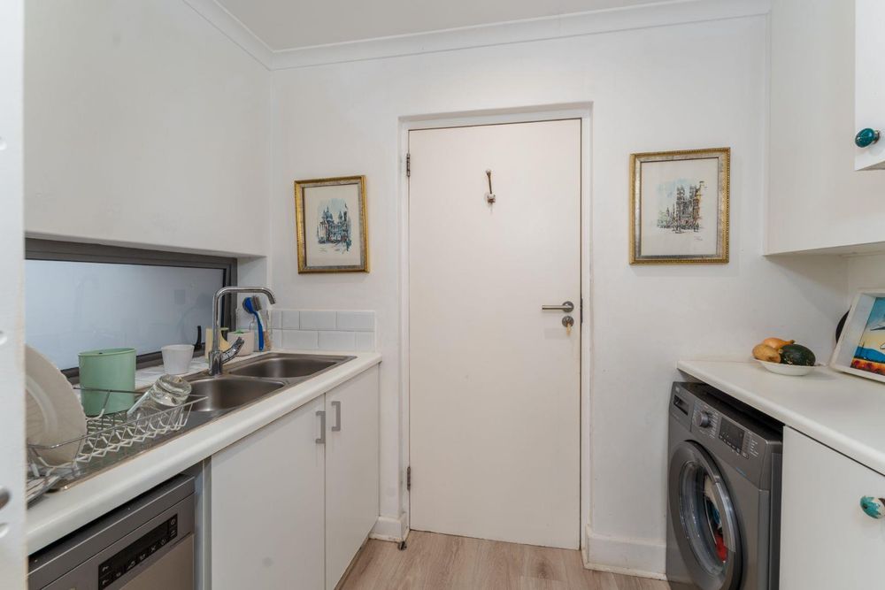 The fitted kitchen is both stylish and practical, featuring a gas hob, electric eye‐level oven, extractor fan, and a separate scullery with space for all appliances, plus direct garage access.