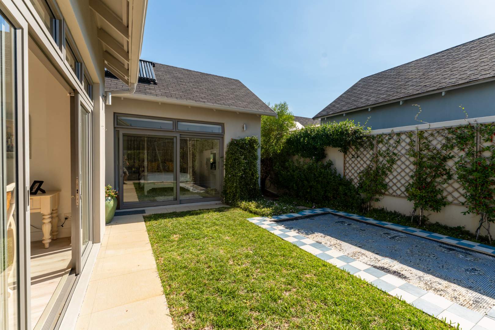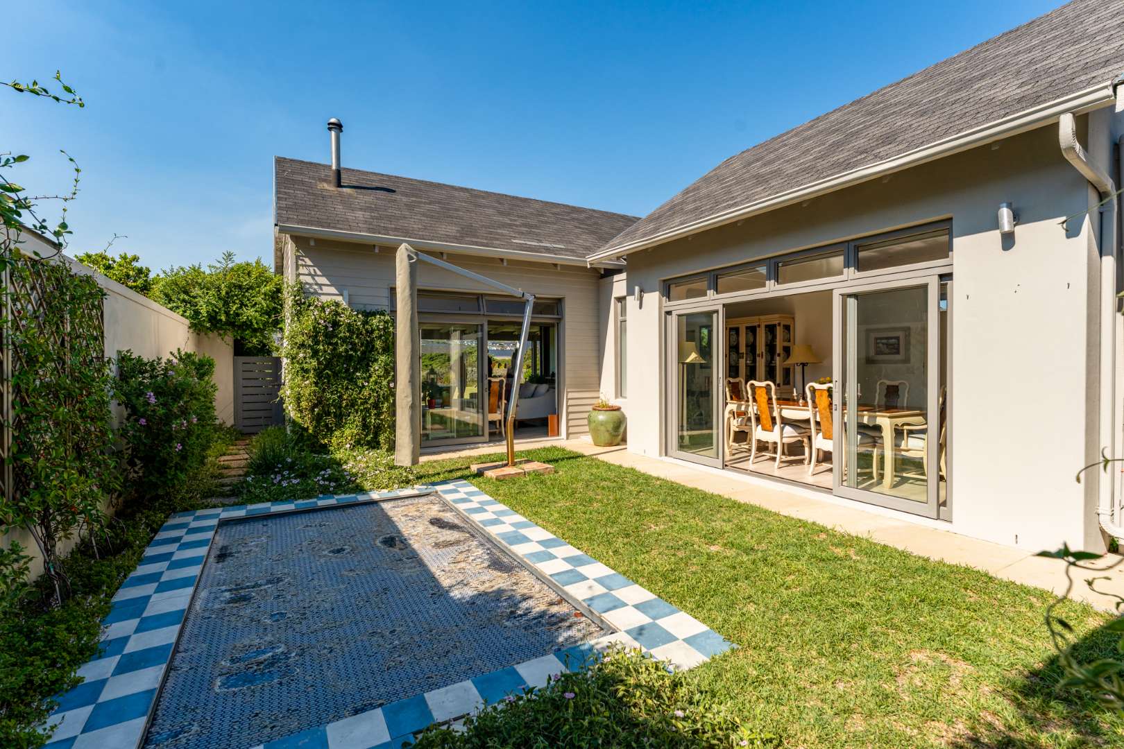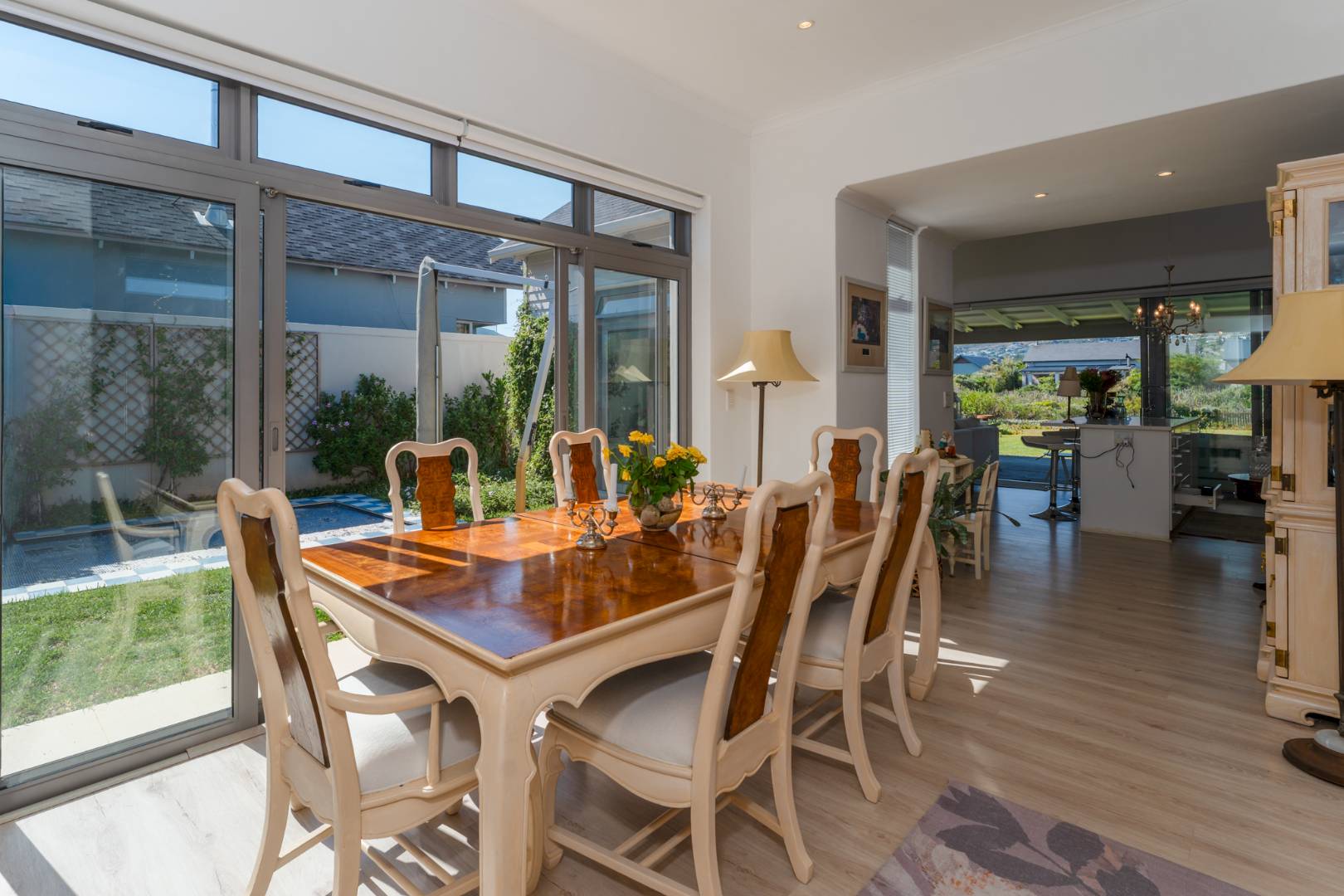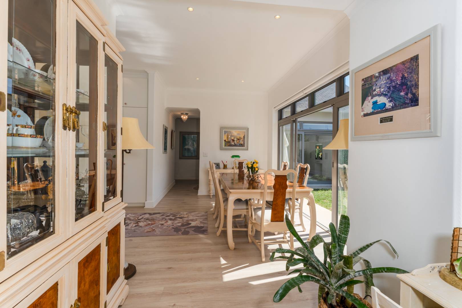 The home’s generous entertainment deck and north‐east facing garden are ideal for gatherings, morning coffees, and spectacular sunrises over the pond and mountains. Newly laid laminated flooring, freshly painted exterior walls, and sustainable features — including a solar geyser, pool heating, and well‐point irrigation — ensure modern comfort with eco‐friendly efficiency.