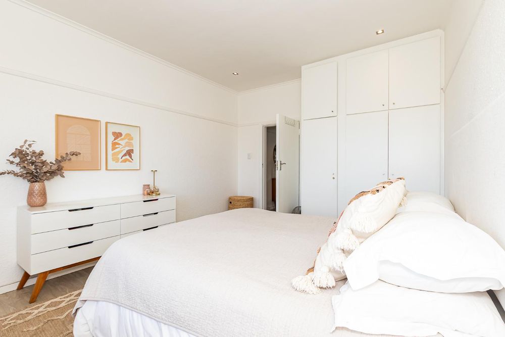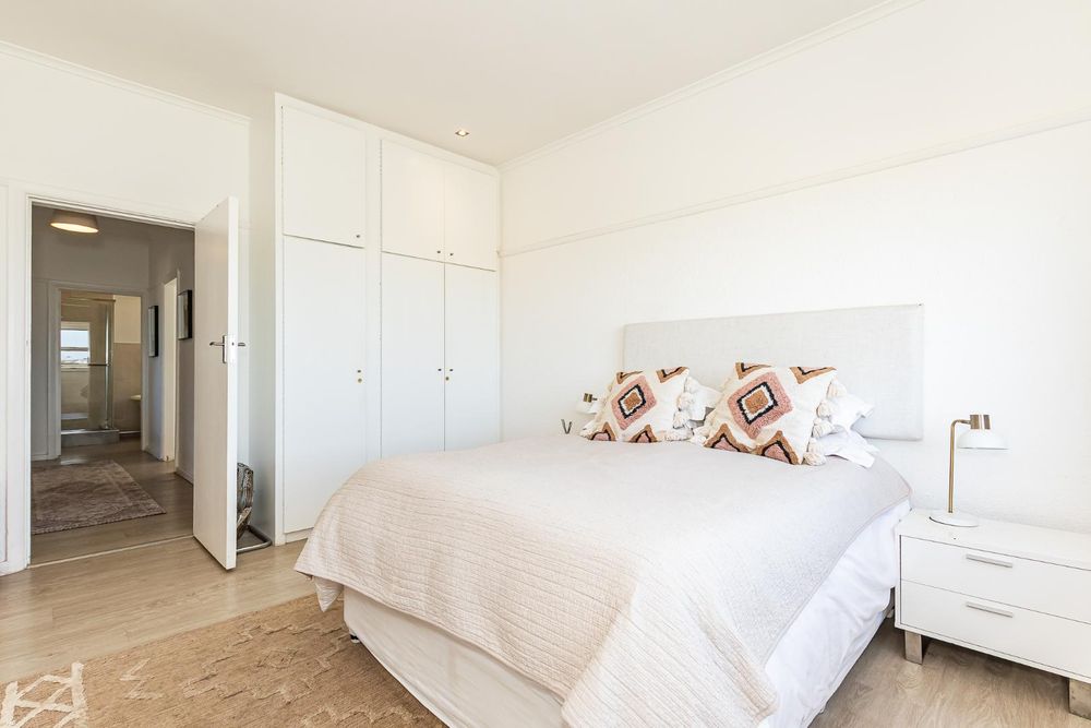 Main bedroom with built-in cupboards and marvelous views over Zandvlei