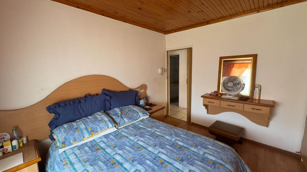 This property welcomes you with a warm dining and lounging area equipped with a fireplace and tiled flooring. All three bedrooms are well-spaced and include built-in cupboards in two of them. The fully tiled family bathroom consists of a bath and toilet.