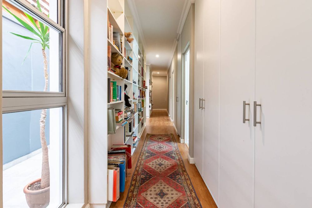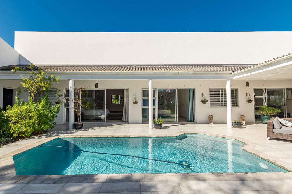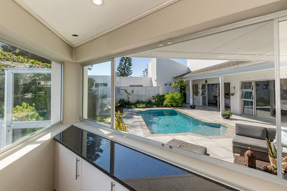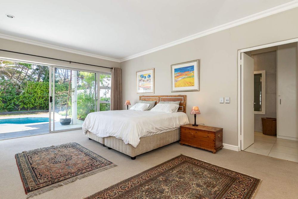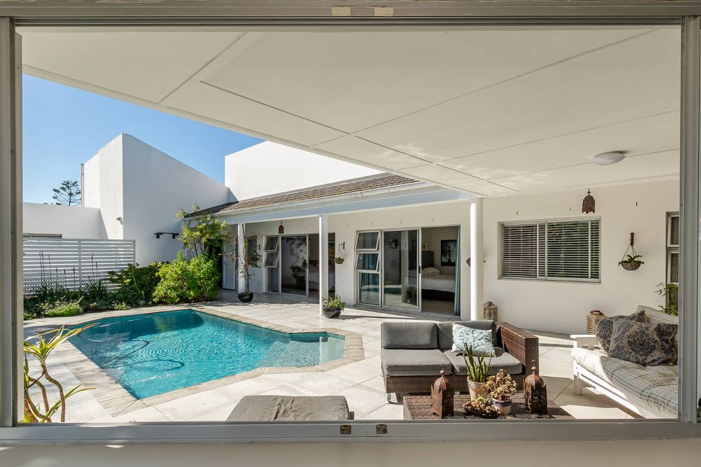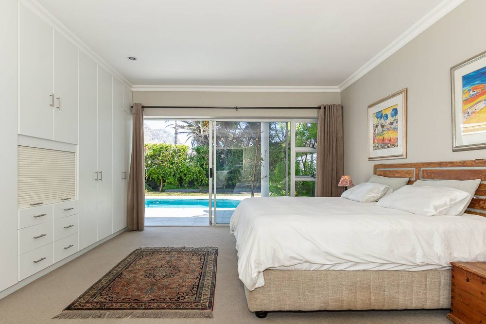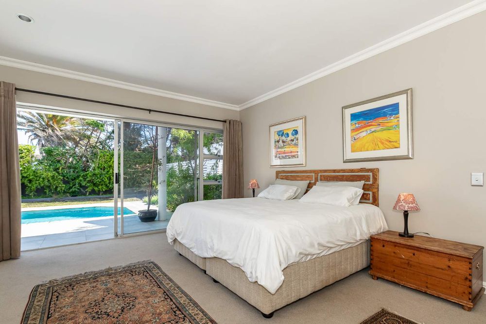 Each of the three carpeted bedrooms opens via sliding doors to the sparkling swimming pool and entertainment area, blending indoor and outdoor living.