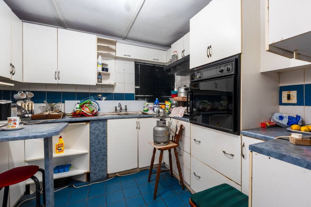 As you enter, you’re welcomed by a generously sized lounge and dining area—ideal for family gatherings or relaxed evenings. The fully tiled kitchen is practical, featuring built-in cupboards and a stove, offering decent space for meal preparation.