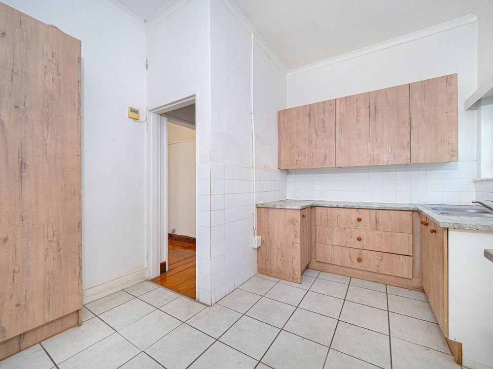 The kitchen is spacious with multiple cupboards and extensive counter space. Space for a free-standing stove and a large fridge. Gas would be easy to install with storage for gas bottles out of view of the garden.