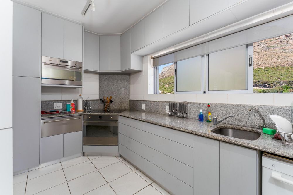The apartment offers bright, open-plan living with beautiful natural light and sweeping mountain and False Bay views from its elevated position.