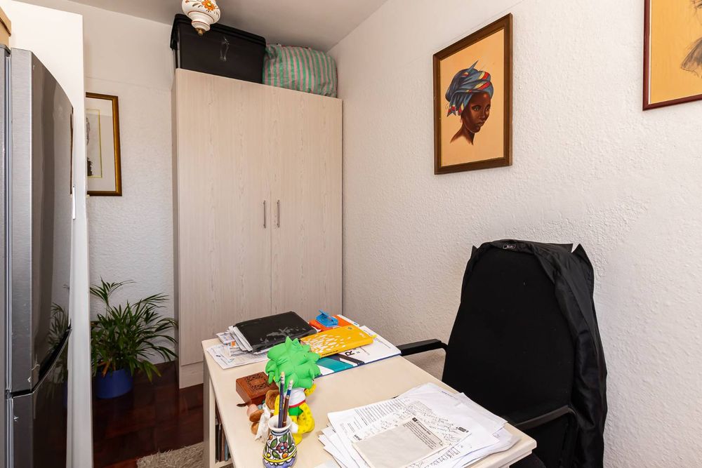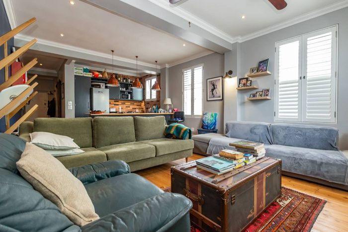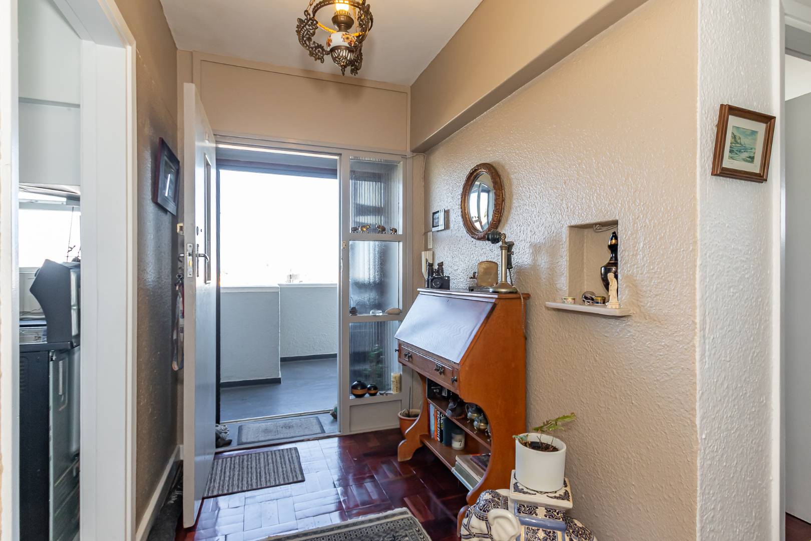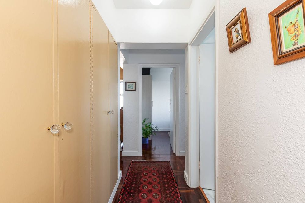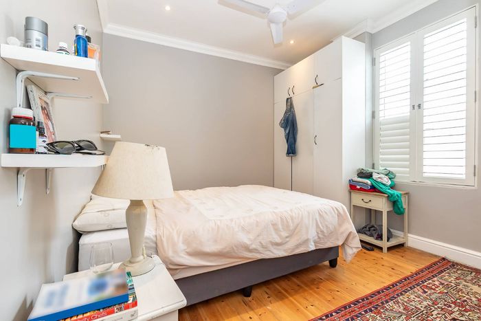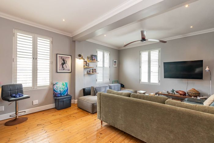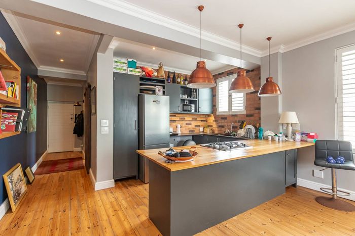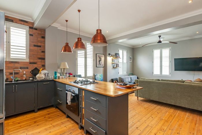 The living areas boast beautifully restored parquet wood flooring, adding warmth and character, while the kitchen and bathroom are neatly tiled for practicality.