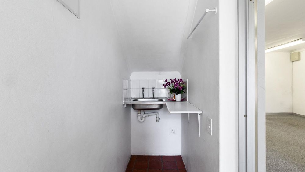 The first floor has a large open-plan office space, suitable for reception or boardroom with 5 other private offices and a small kitchenette. The second floor has another large office with beautiful high ceilings and beams and 3 other private offices. There is a toilet and basin on both floors.