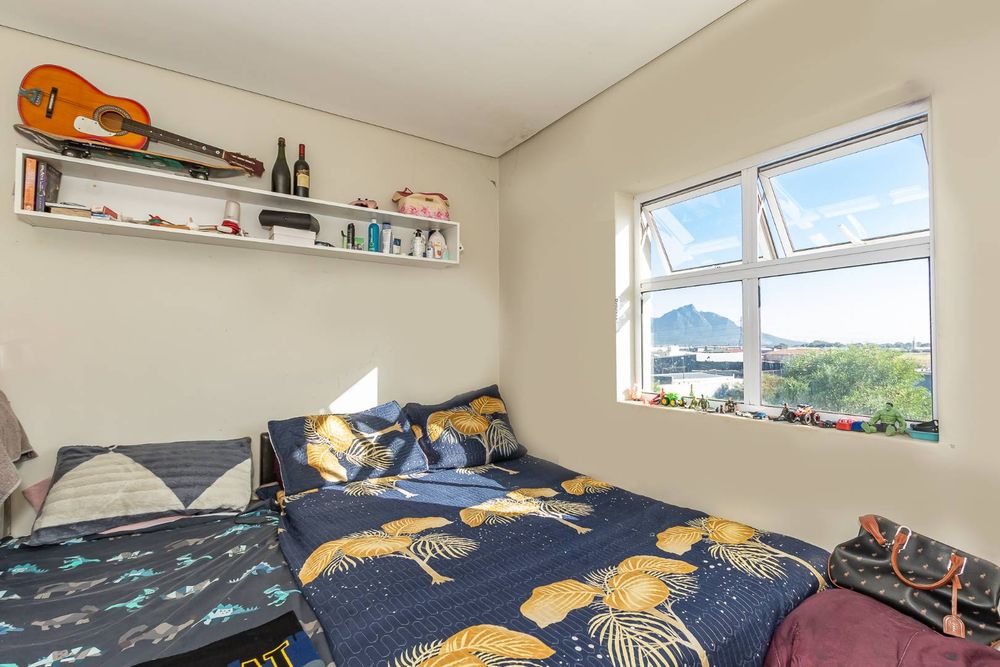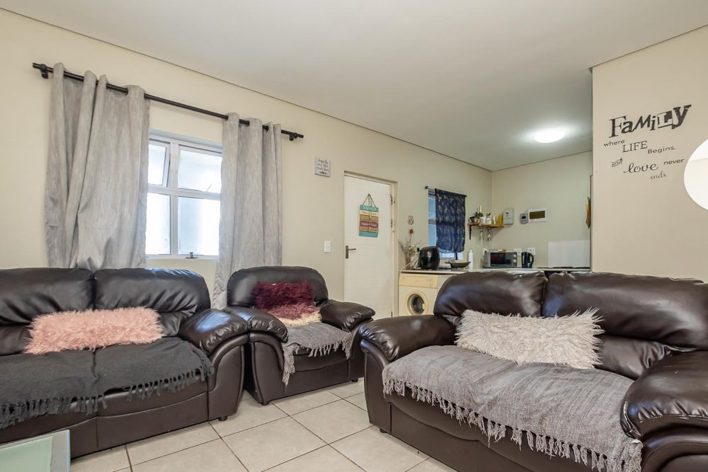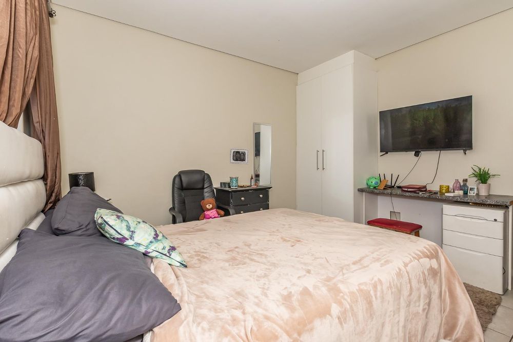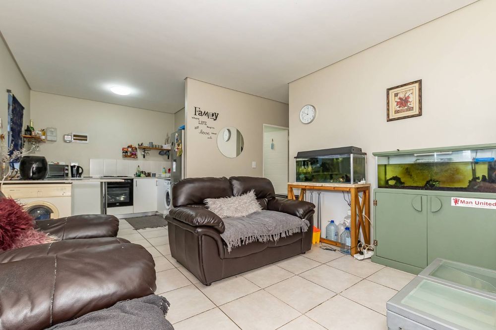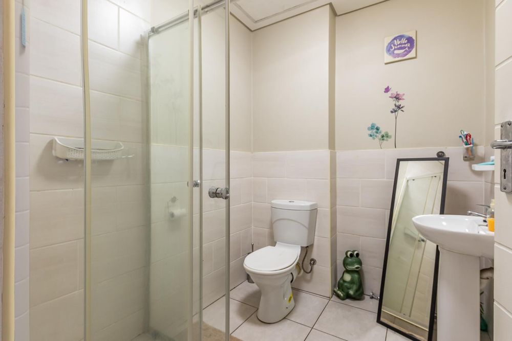 The main bedroom boasts built-in cupboards and tiled flooring, providing a low-maintenance and modern finish. The fully fitted bathroom is neatly tiled and includes a shower, toilet, and basin.