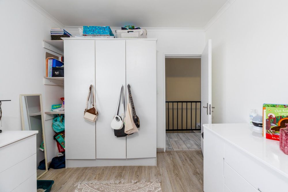 Upstairs features three generously sized bedrooms with built-in cupboards, offering ample storage, along with a cozy lounge area that opens onto a charming balcony through a sliding patio door—perfect for enjoying peaceful mornings or unwinding in the evenings. A convenient guest toilet adds to the upstairs practicality.