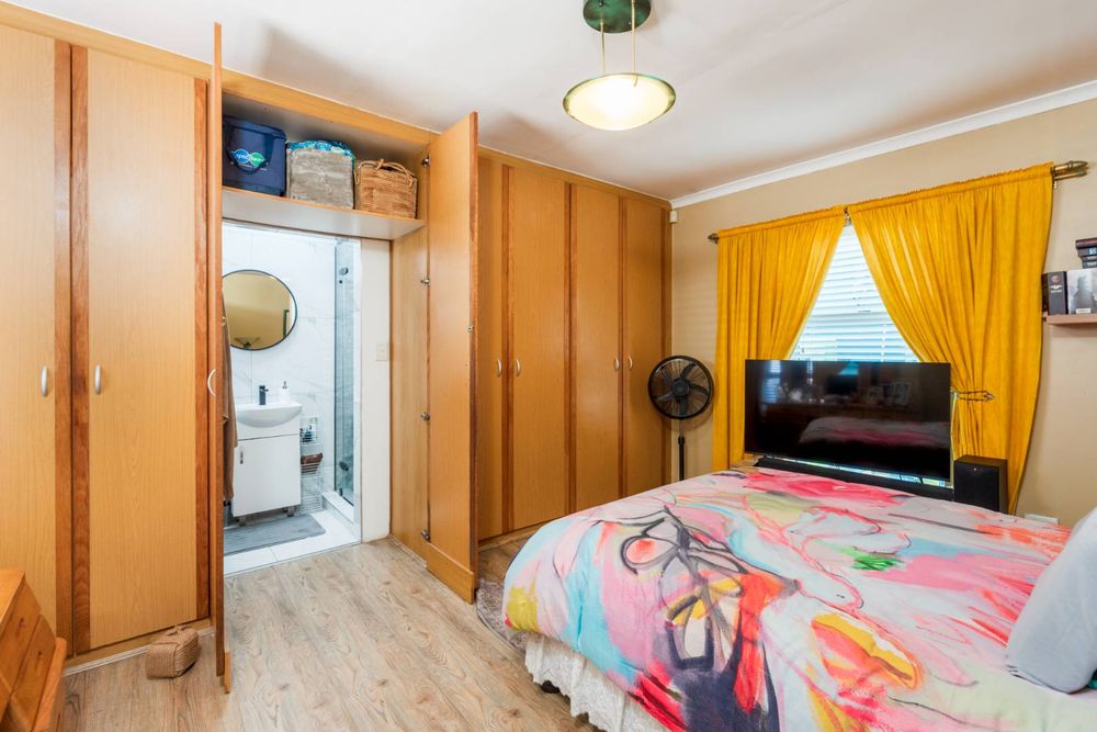 Downstairs, the home offers a luxurious main bedroom with a concealed ensuite for added privacy and a second bedroom currently used as an office, complete with built-in cupboards, providing flexibility for work-from-home needs.