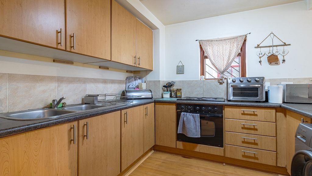 On entering this charming townhouse, you are welcomed into a stunning and well-appointed kitchen, boasting ample cupboard and counter space, and complemented by a breakfast nook that seamlessly connects the kitchen to the dining room. The kitchen is fully equipped with an under-counter oven and hob, and space for one under-counter appliance and a fridge.