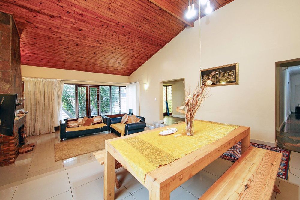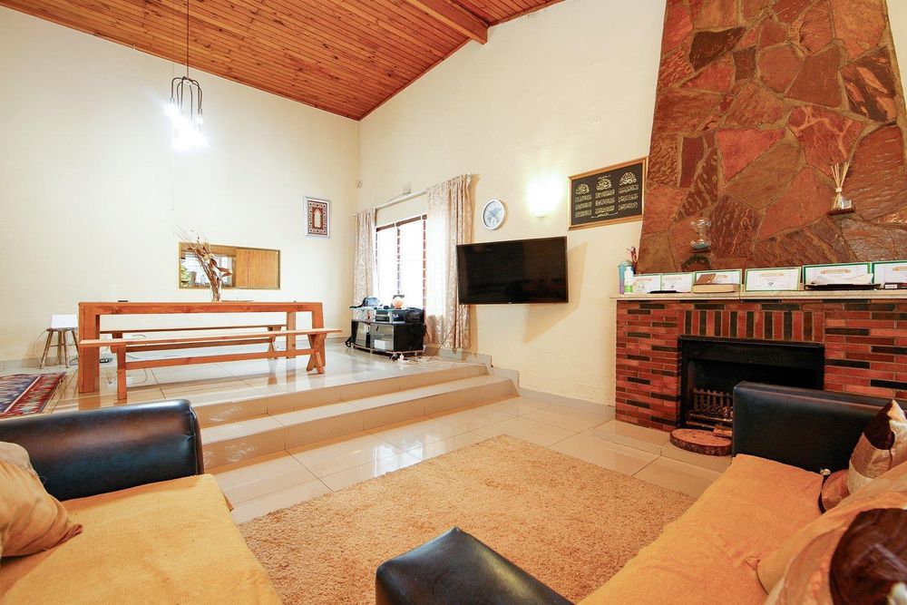 The open-concept design seamlessly connects the spacious Dining Room, lounge has a fully functional fire place and high ceilings giving it a very elegant look opens up to a patio area , giving an ambience of warmth and airyness.