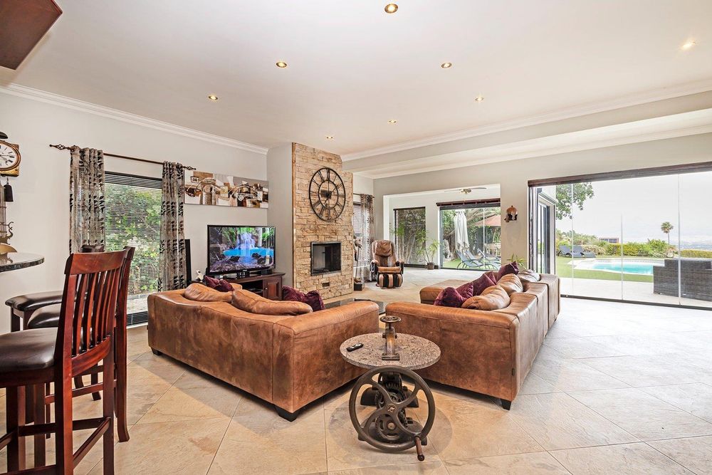 Opulent Main House: Enter a world of refined elegance with a meticulously designed interior, complete with a wine cellar for connoisseurs, and an indoor braai with a pizza oven for entertaining in style. The tea/coffee room offers stunning views and direct access to the garden and heated pool, perfect for intimate gatherings.