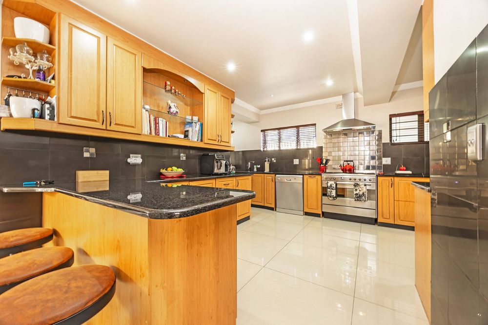 Outside, an entertainer's paradise awaits, with a braai area overlooking a sparkling pool, set in a secure, enclosed garden. This home is equipped with a state-of-the-art inverter system, ensuring peace of mind during power outages, and offers secure parking behind closed gates for up to six cars, including an immaculate tiled garage. Wine enthusiasts will be delighted by the exclusive wine cellar.