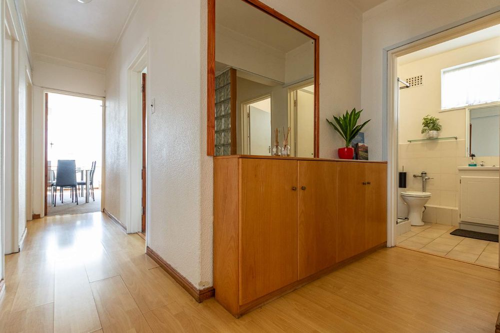 A bright and airy apartment is ready to welcome its new owners! This well-maintained home offers three generously sized bedrooms, all featuring built-in cupboards. The apartment includes two separate bathrooms—one with a shower, toilet, and basin, and the other with a bath, toilet, and basin—for added convenience.