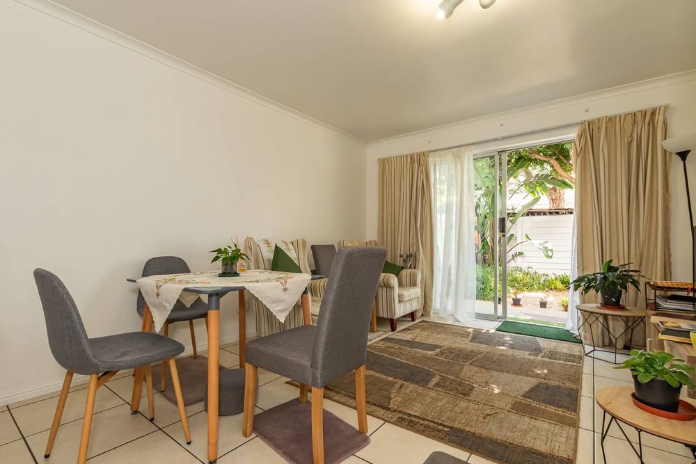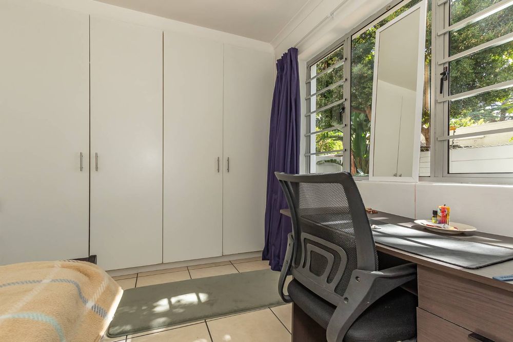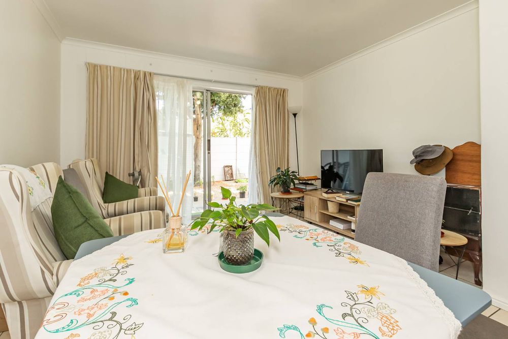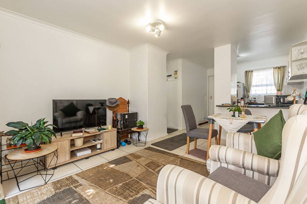 The unit has an open plan living room with sliding doors to the garden and features tiled floors throughout for easy living and low maintenance.