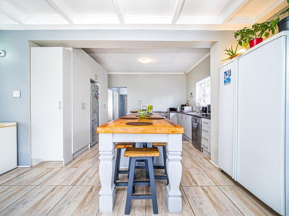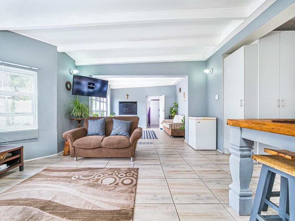 It also has a freestanding workspace that has a prep basin and a single gas hob. The lounge/entertainment area flows off the kitchen and becomes part of the indoor braai area, creating a cozy and inviting space for family and friends.
