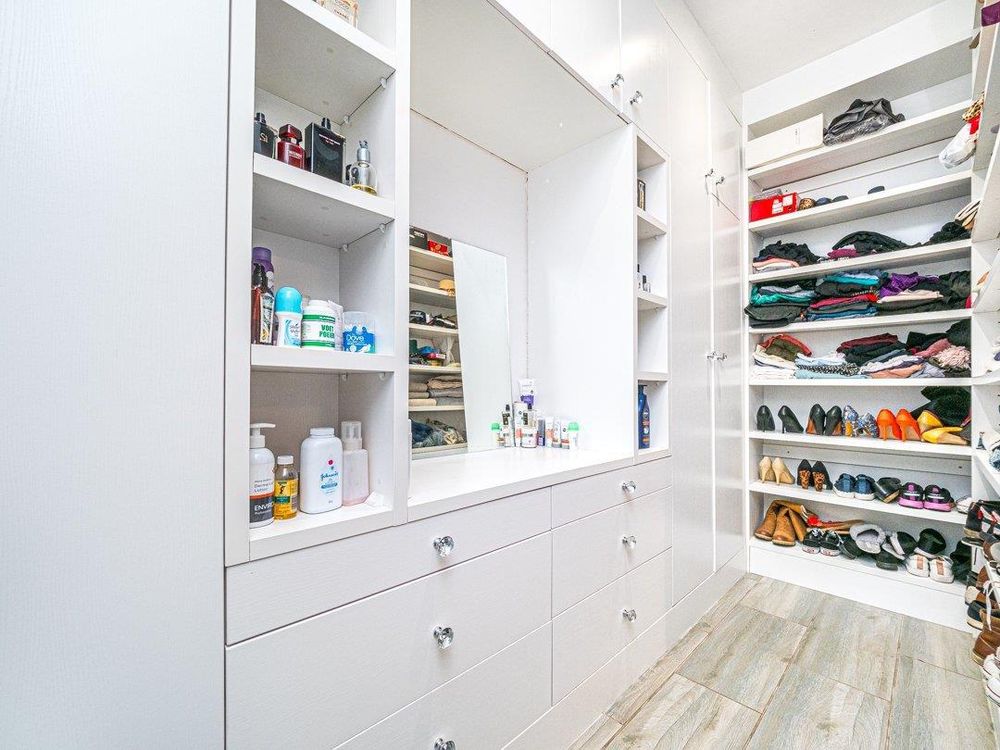 The bedrooms all have built-in cupboards and tiled flooring, and the main bedroom features a walk-in closet.