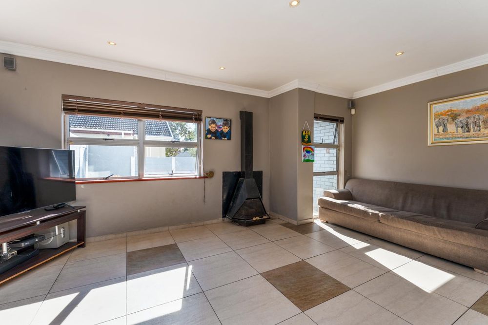 The main residence welcomes you with a beautiful entertainment area in the front garden, featuring a sparkling swimming pool, built-in braai, and a well-maintained garden – perfect for outdoor entertaining and family gatherings.