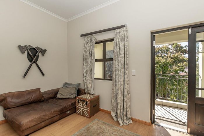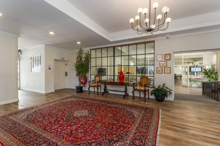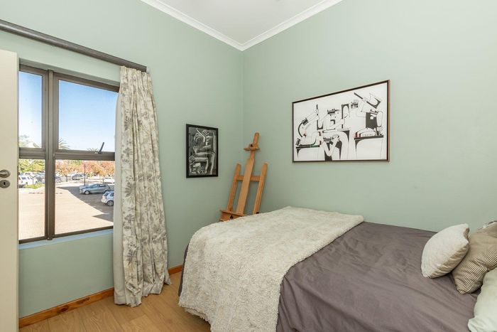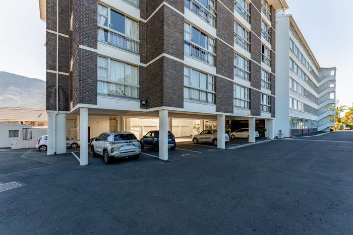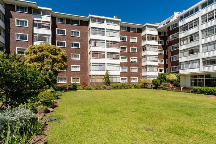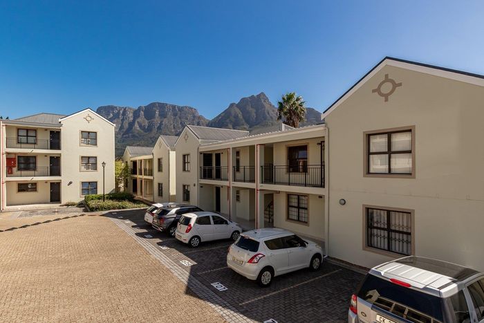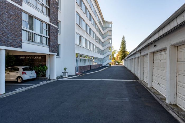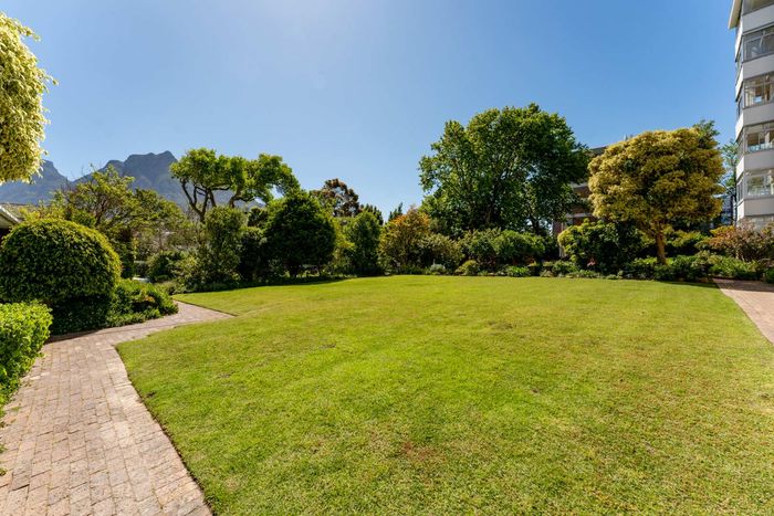 Relaxed central living in Grosvenor Square with mountain views, sunny communal garden, braai area and pool — one-bedroom, one-bath apartment with open-plan kitchen and Juliet balcony.