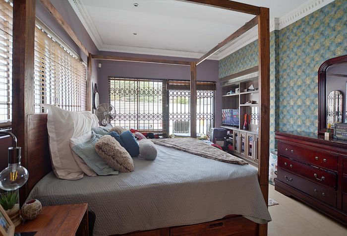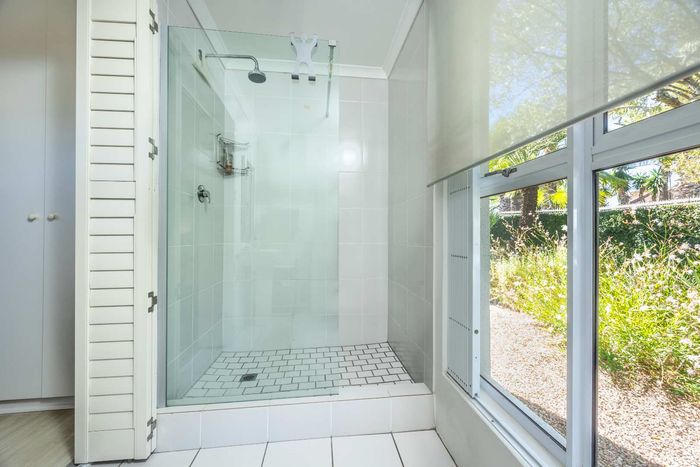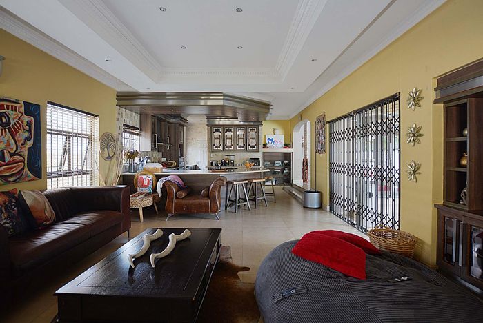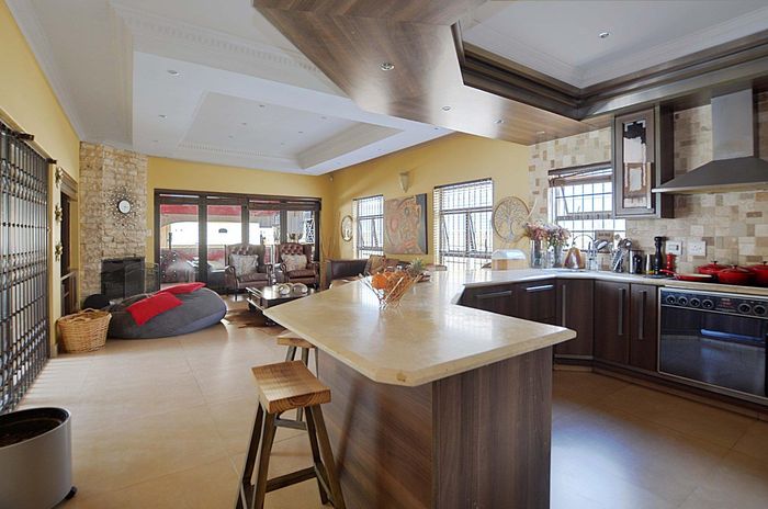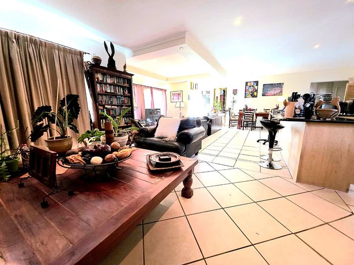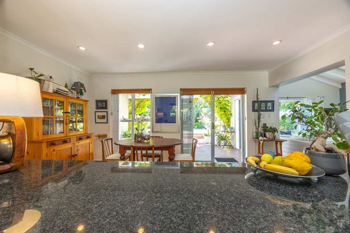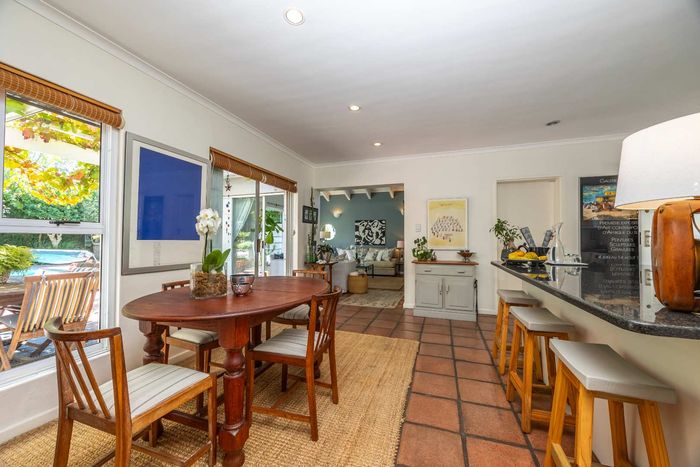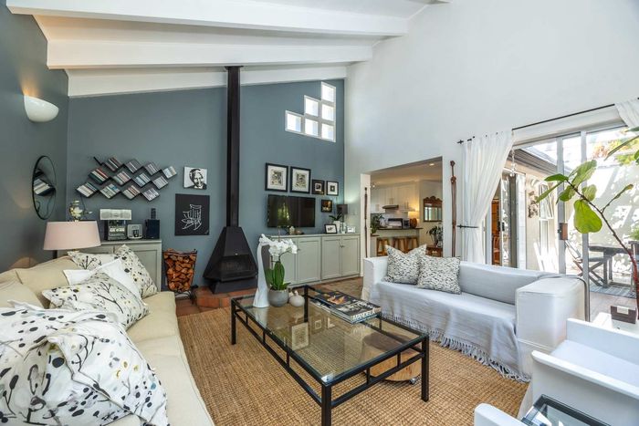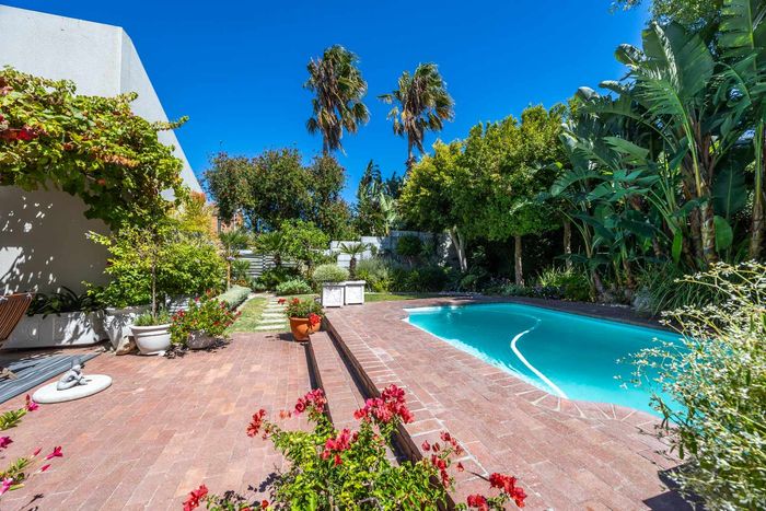 Effortless entertaining in a leafy suburb retreat with double-volume entrance and indoor–outdoor flow to a solar-heated pool. Chef’s kitchen, braai room, three bedrooms, two baths, double garage.