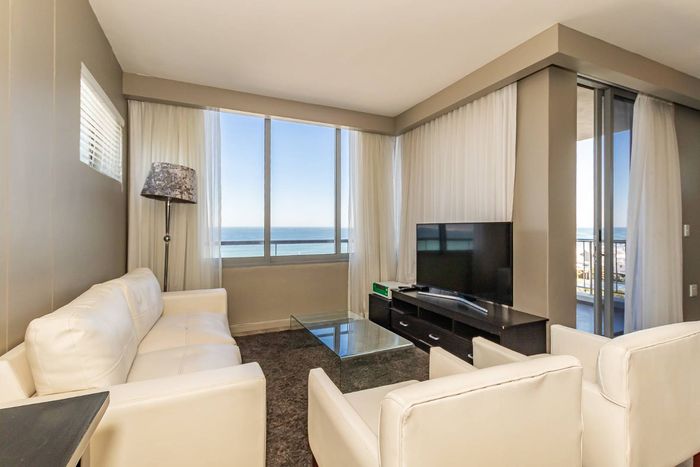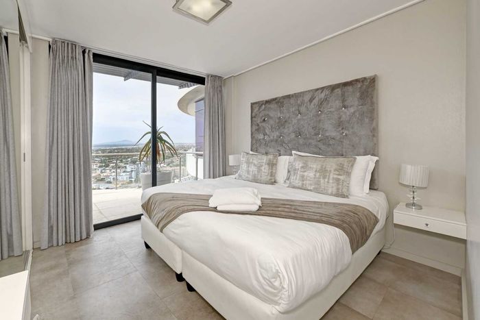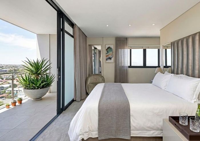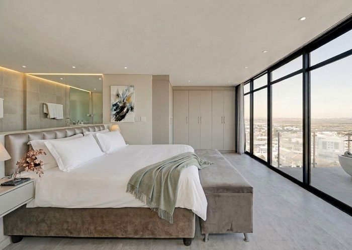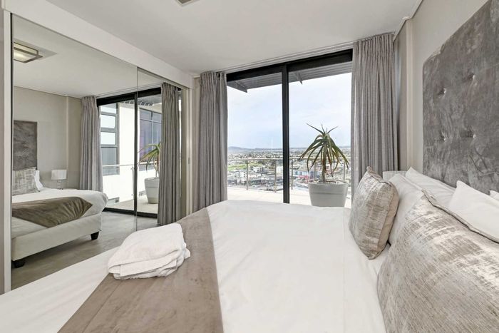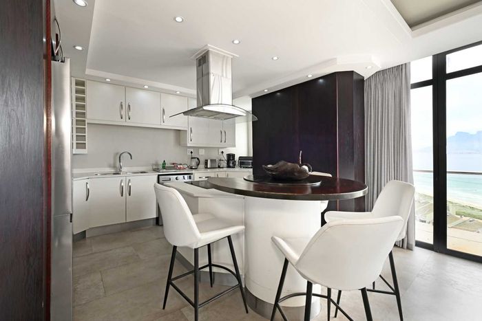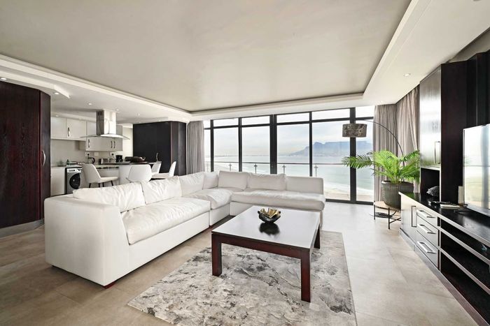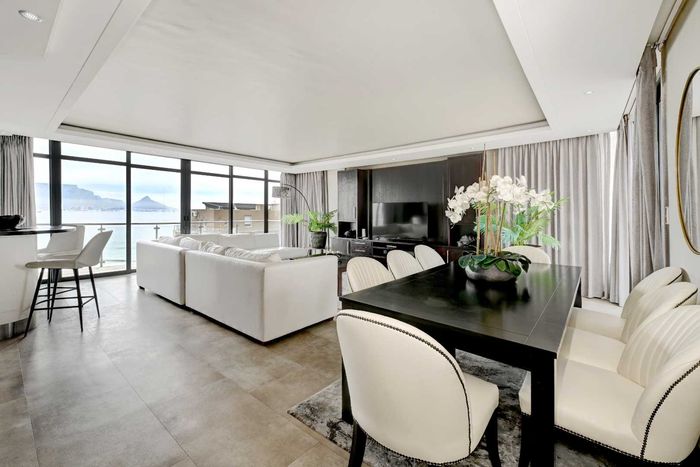 Embrace coastal penthouse living in Cape Town with iconic Table Mountain and Robben Island views, wrap-around terrace with private Jacuzzi — four en-suite bedrooms and secure parking.