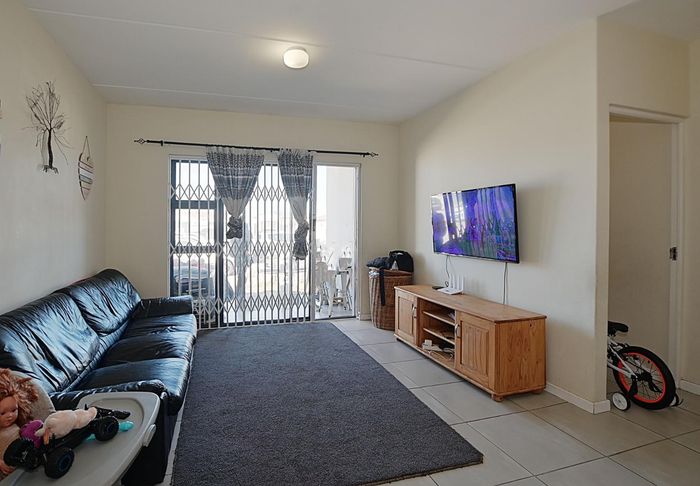 Coastal living with easy beach access and kite-surfing vibes in Parklands, first-floor unit offering Table Mountain views from balcony — two bedrooms, one bathroom, two parking bays.