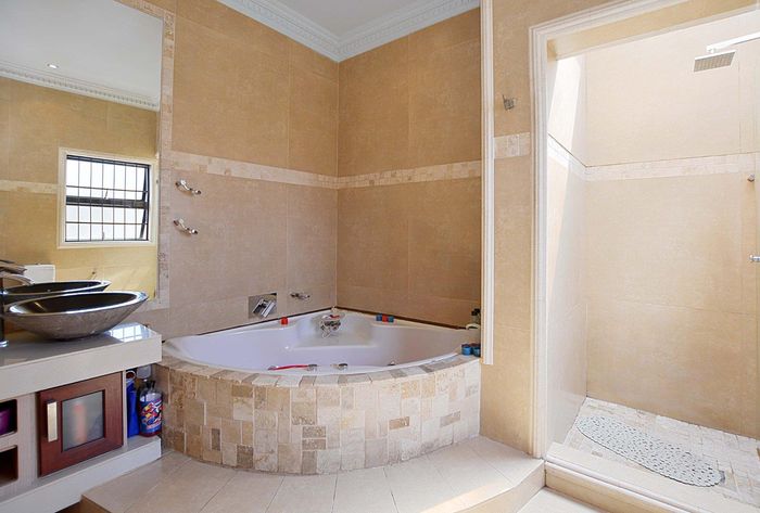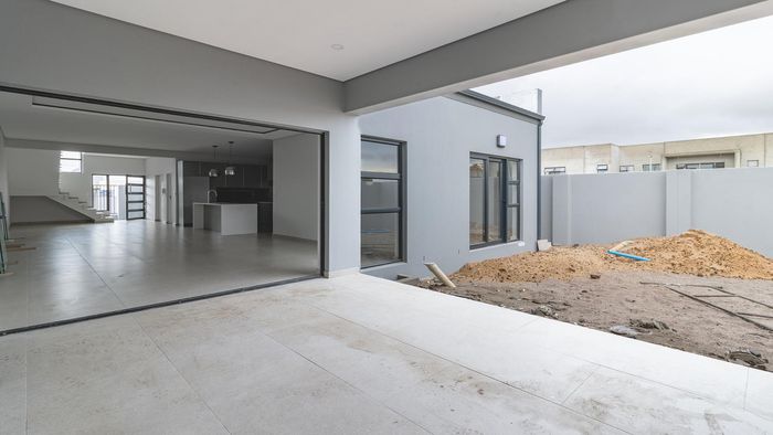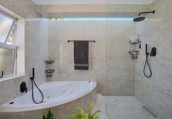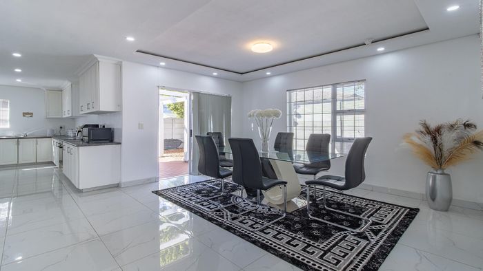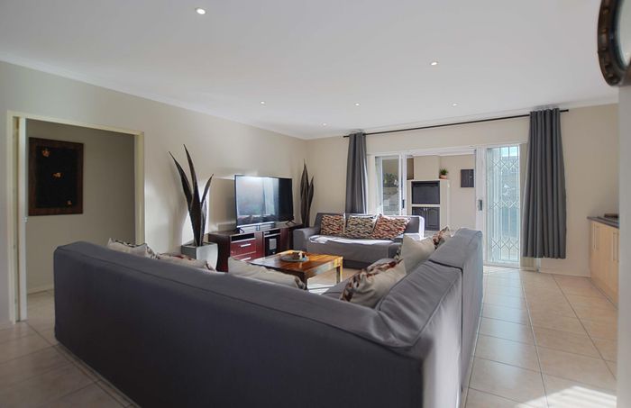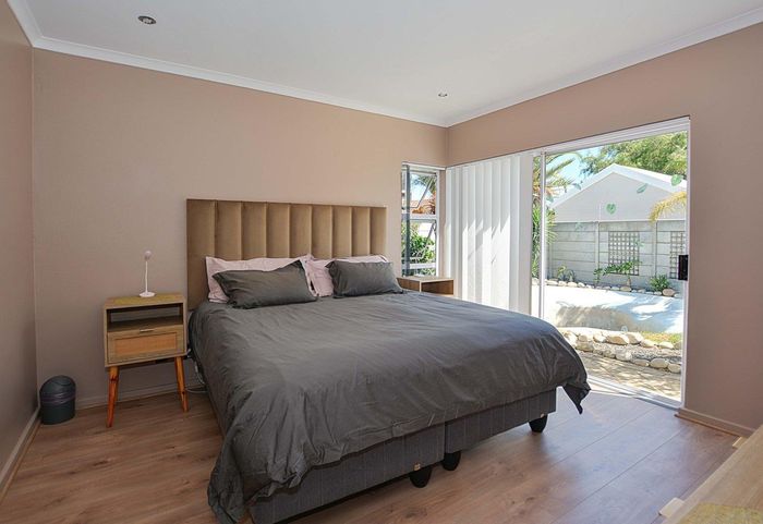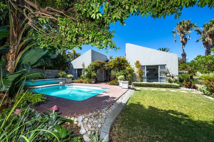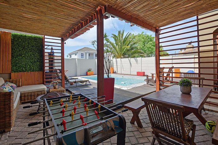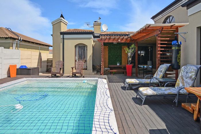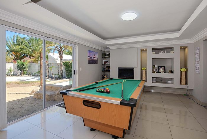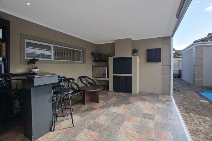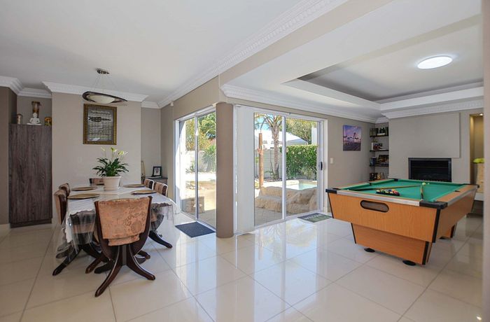 Entertainer's dream in quiet Parklands cul-de-sac, minutes from Blouberg Beach and local amenities — seamless indoor-outdoor living with rock pool and solar-heated jacuzzi; four beds, three baths, double garage.