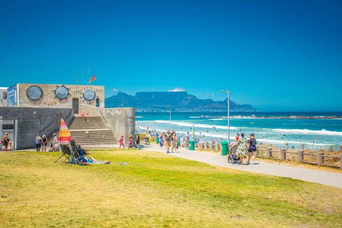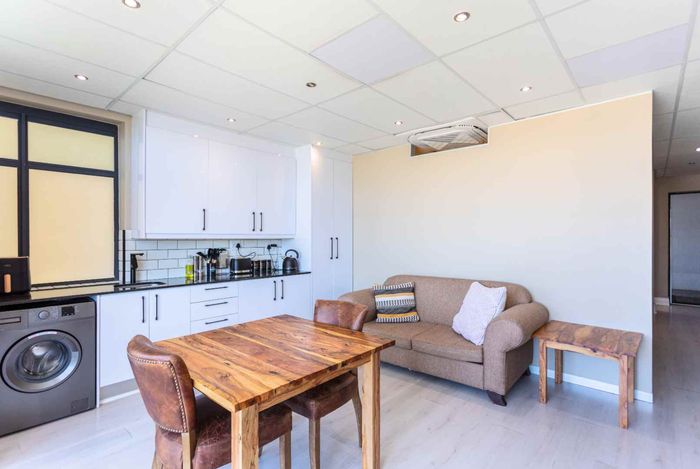 Wake up to panoramic Table Mountain, Robben Island and ocean views in this open-plan apartment with fully fitted kitchen, one bedroom, one bathroom; walking distance to beaches.