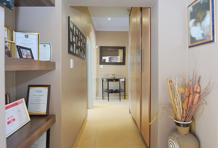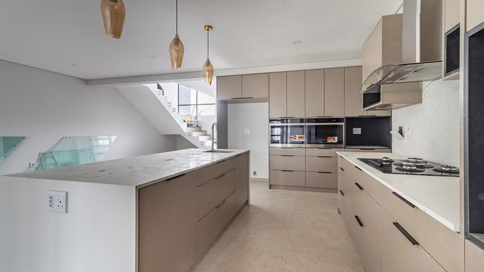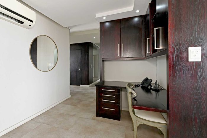 Enjoy refined indoor-outdoor living in Sandown's vibrant heart, with a braai room opening to a private garden and balcony views. Four bedrooms, four baths and double garage.