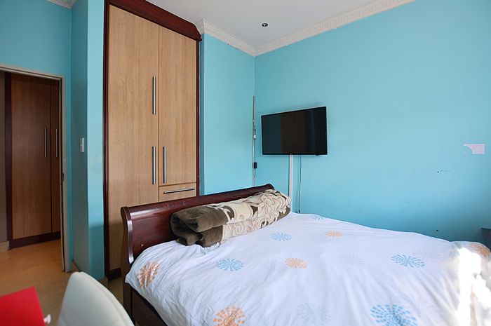 Modern corner-lot property with main house, two flatlets, pool, garages, solar system, and secure features for income potential.