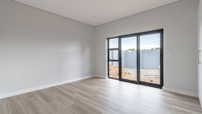 Relaxed gated-community living near shops, schools and MyCiTY bus, with a private low-maintenance garden and covered patio with built-in braai — two-bedroom, one-bath with automated garage.