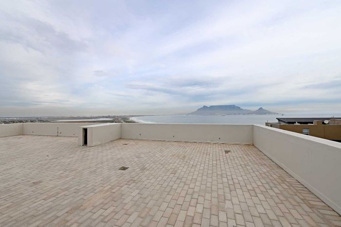 Sunset rooftop entertaining and coastal living on Blouberg beachfront, with uninterrupted Table Mountain, Robben Island and Atlantic views; private rooftop terrace, two balconies, three bedrooms, three baths.