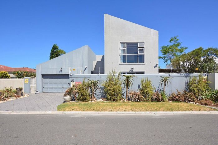 Coastal family living minutes from Blouberg Beach, near top schools and Netcare Hospital. Upstairs lounge offers Table Mountain sunset views; pool, full braai/bar, double garage.
