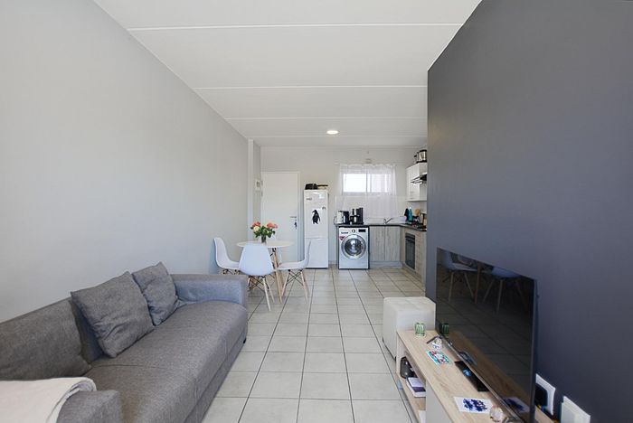 Resort-style lock-up-and-go living in Fynbos Lifestyle Estate, with on-site padel, gym and restaurant; top-floor one-bedroom, one-bath apartment with designated parking and modern kitchen appliances.