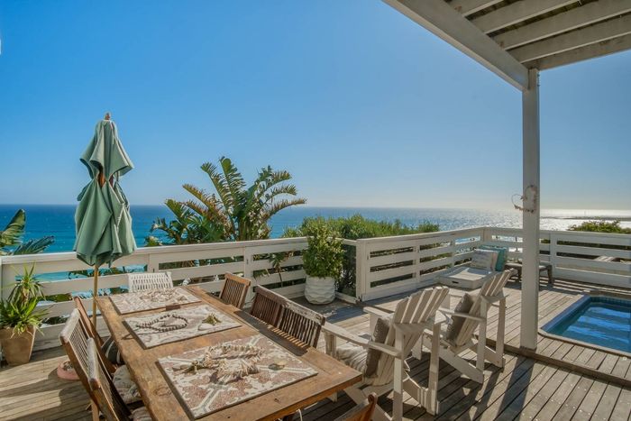Relax in Misty Cliffs between mountain and sea, with panoramic ocean views, seamless indoor-outdoor flow and wraparound deck with pool — four bedrooms, four bathrooms.