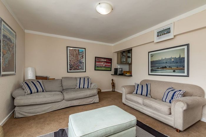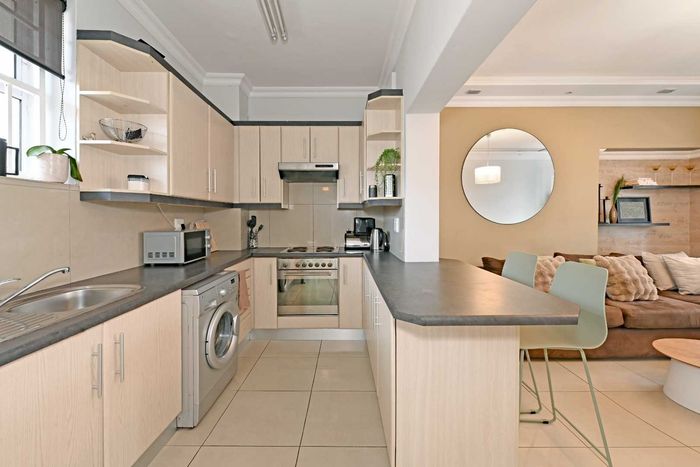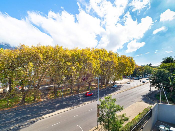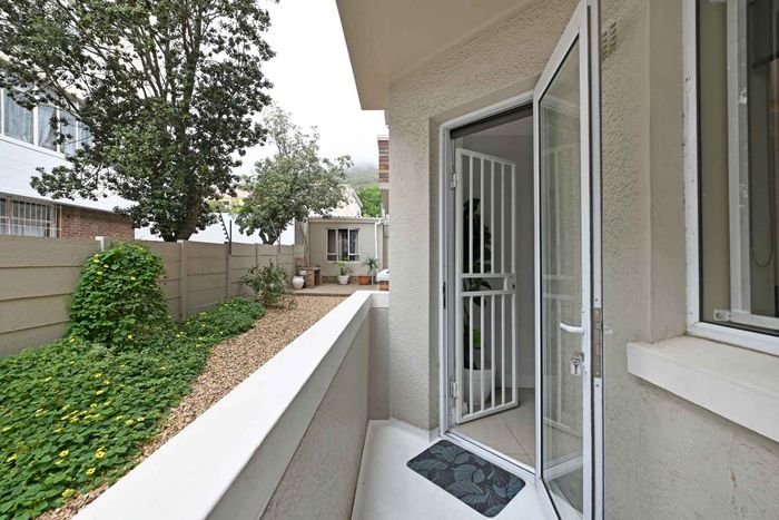 Walk to Kenilworth Centre and top schools, relax on a private balcony with mountain views, and enjoy communal pool plus secure complex; two bedrooms, one bathroom, open parking.