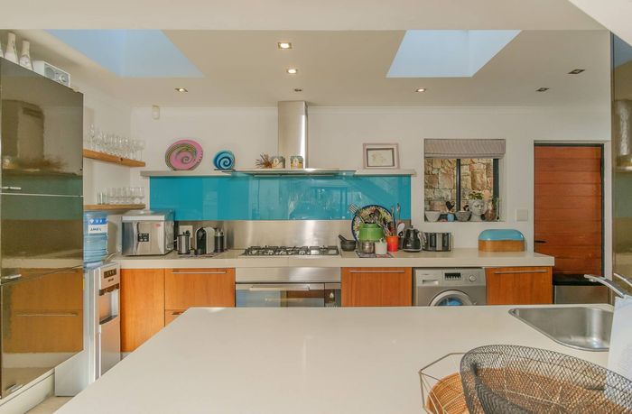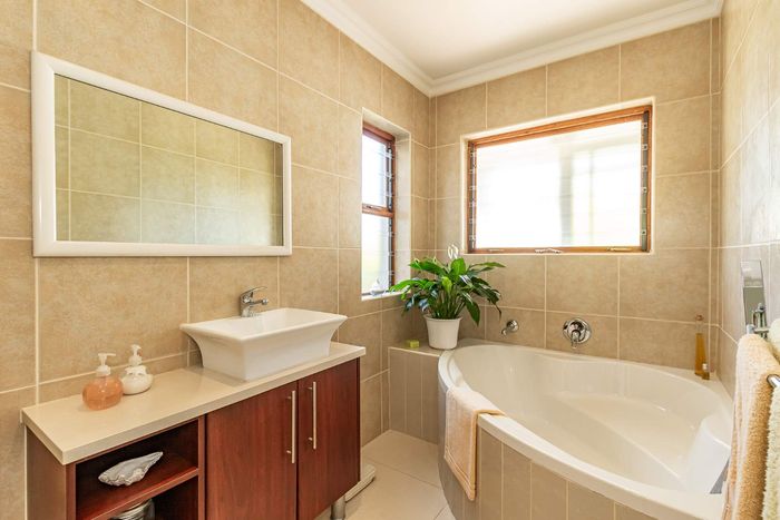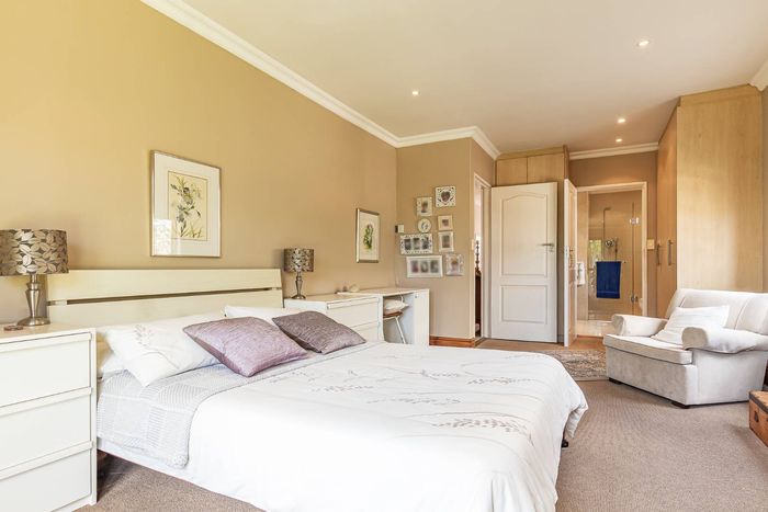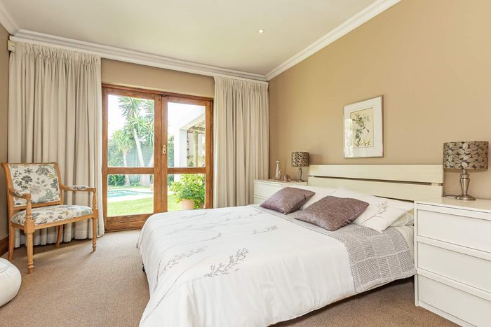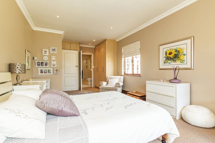 Effortless entertaining and relaxed family living on Kirstenhof’s greenbelt edge, with Constantia mountain sunset views, designer kitchen and solar-heated pool; three en-suite bedrooms and double garage.